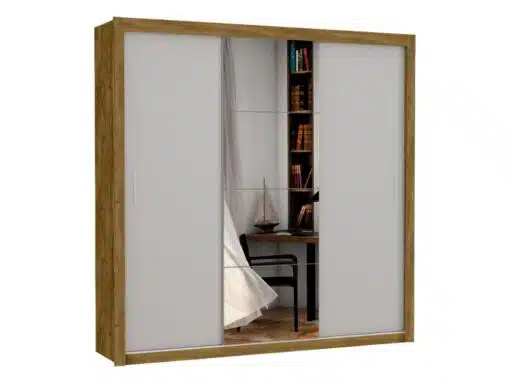Guarda-Roupa Veneza Plus c/ espelho 3 portas e 4 gavetas – Freijó/Off White