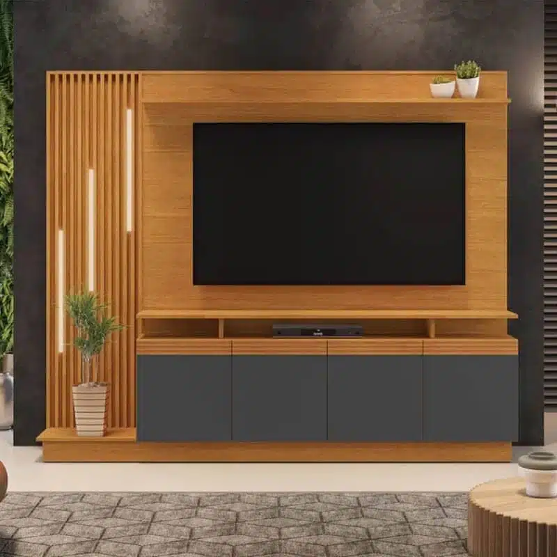 3{%%}Descrição#VÍDEO{%%}Home Absoluto Cinamomo/Grafite Ripado C/ Led TV até 65 Polegadas Larg. 2.00m – JCM