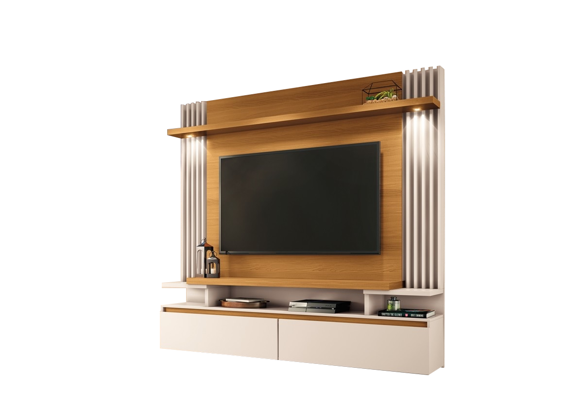 – Espaço para TV: 136 cm x 96,5 cm x 23 cm (LxAxP)