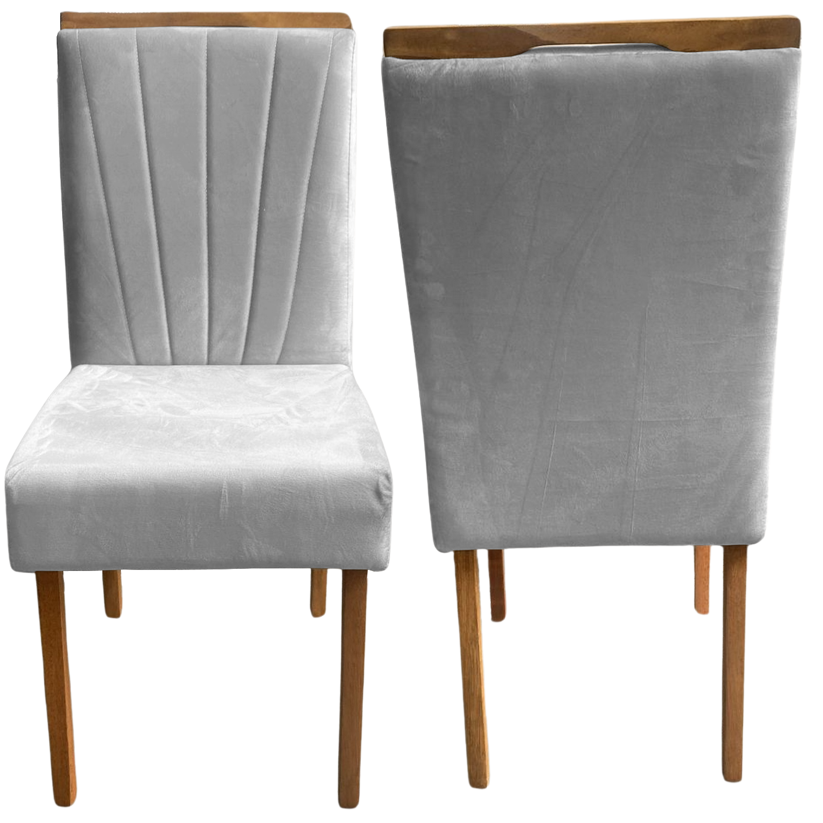 Kit 2 Cadeiras Patrícia 01 Imbuia Mel/Veludo Cinza Prata 148 – CARVALHO DECOR