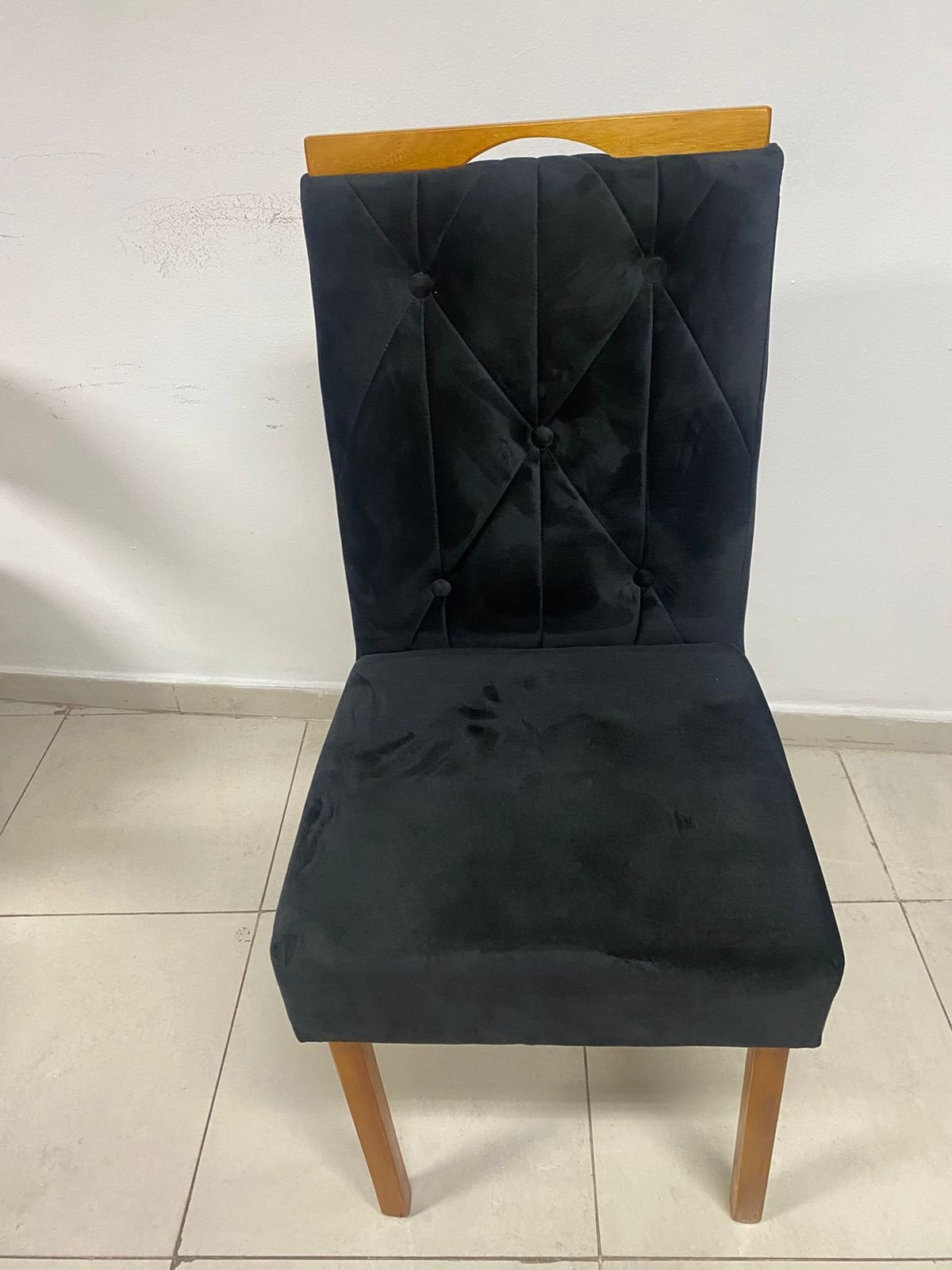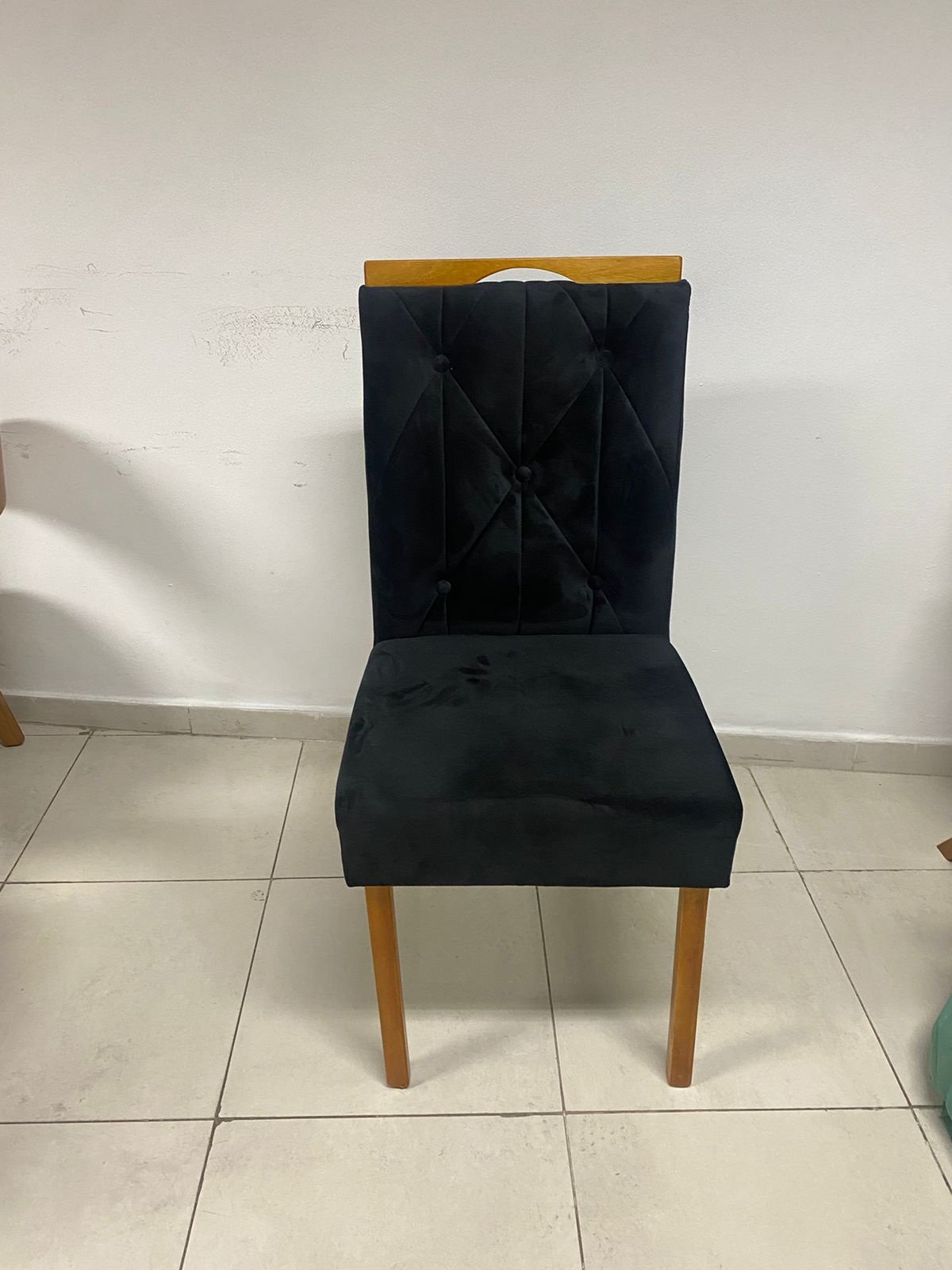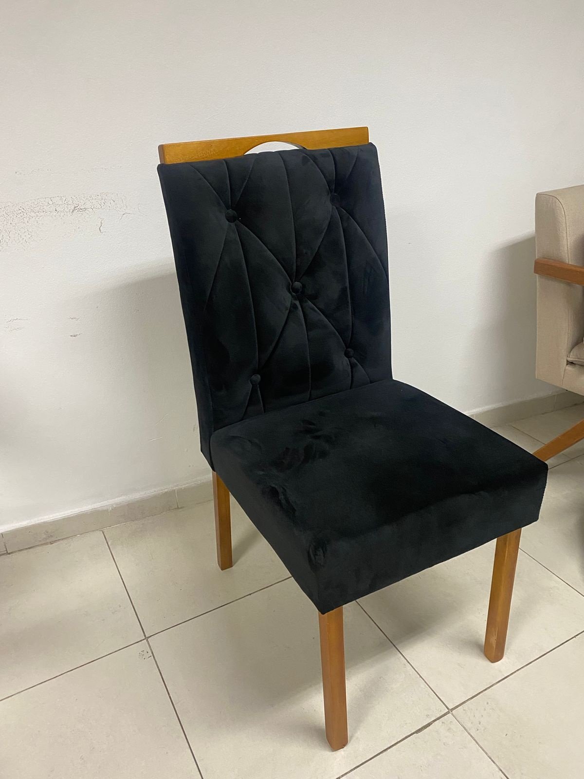 – Assento e encosto em veludo preto