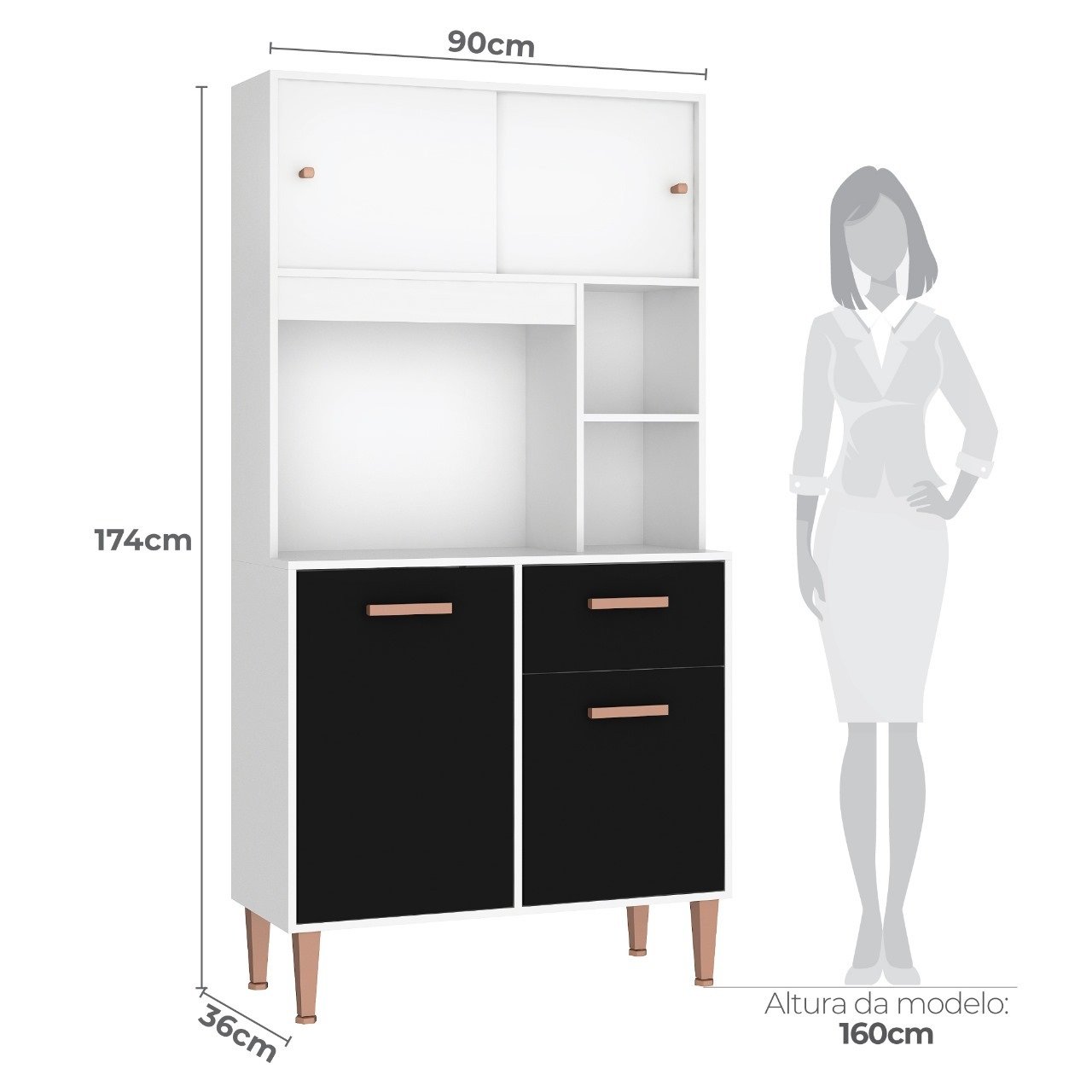 Kit Cozinha Dália C211 0,90 m Branco/Preto – FELLICCI