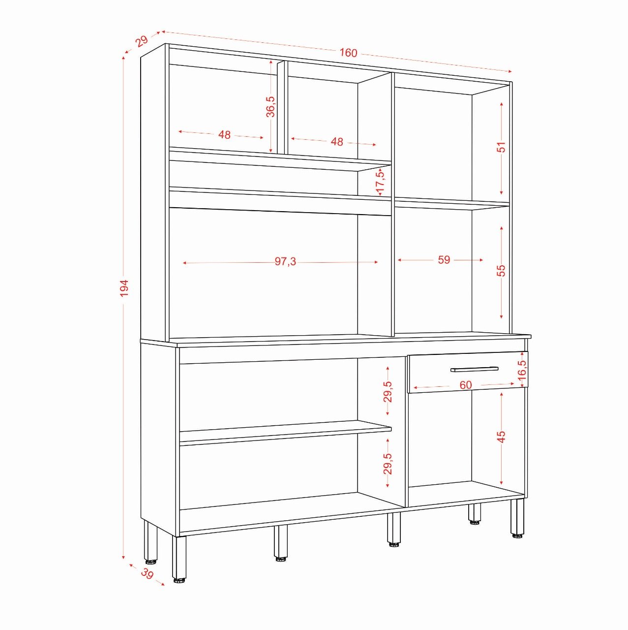 Kit Cozinha Siena 1,60 m Atacama/Off White – ARAMÓVEIS