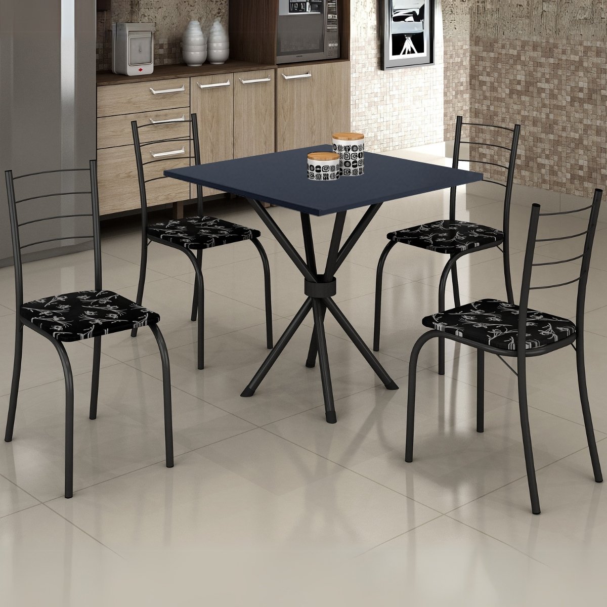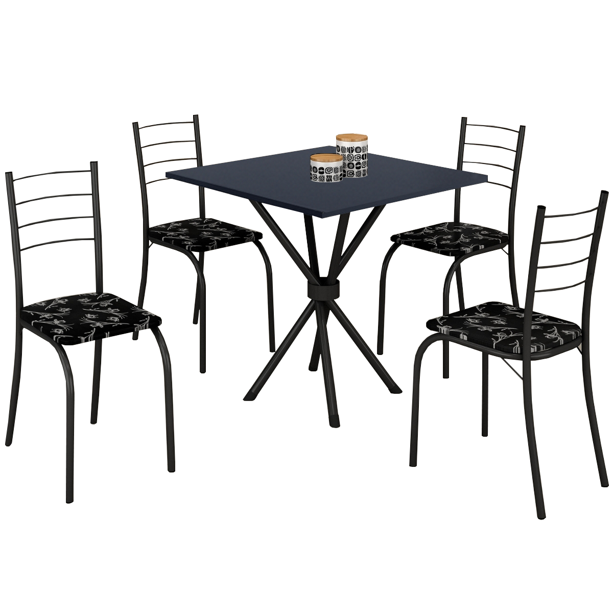 Mesa 4 Cadeiras Rio 75×75 Preto/Grafite/Preto Lírio – TEIXEIRA