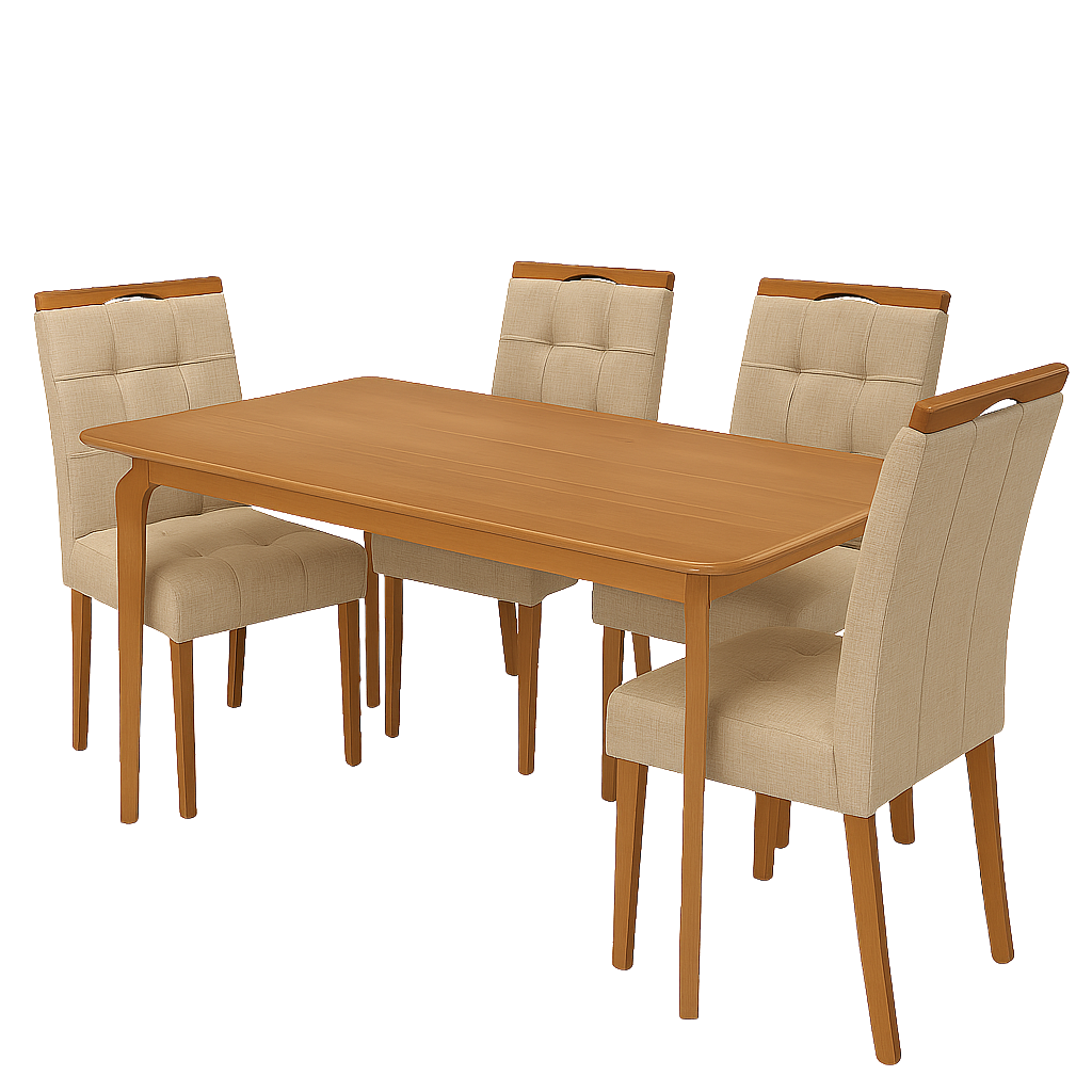 Mesa Alegra 120 Cinamomo com 4 Cadeiras Sophia Linho Bege 200 – JCM MOVELARIA + WM DECOR