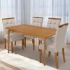 Mesa Alegra 120 Cinamomo com 4 Cadeiras Sophia Veludo Bege – JCM MOVELARIA + WM DECOR