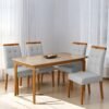 Mesa Alegra 120 Cinamomo/Off White com 4 Cadeiras Sophia Linho Cinza Prata 206 – JCM MOVELARIA + WM DECOR