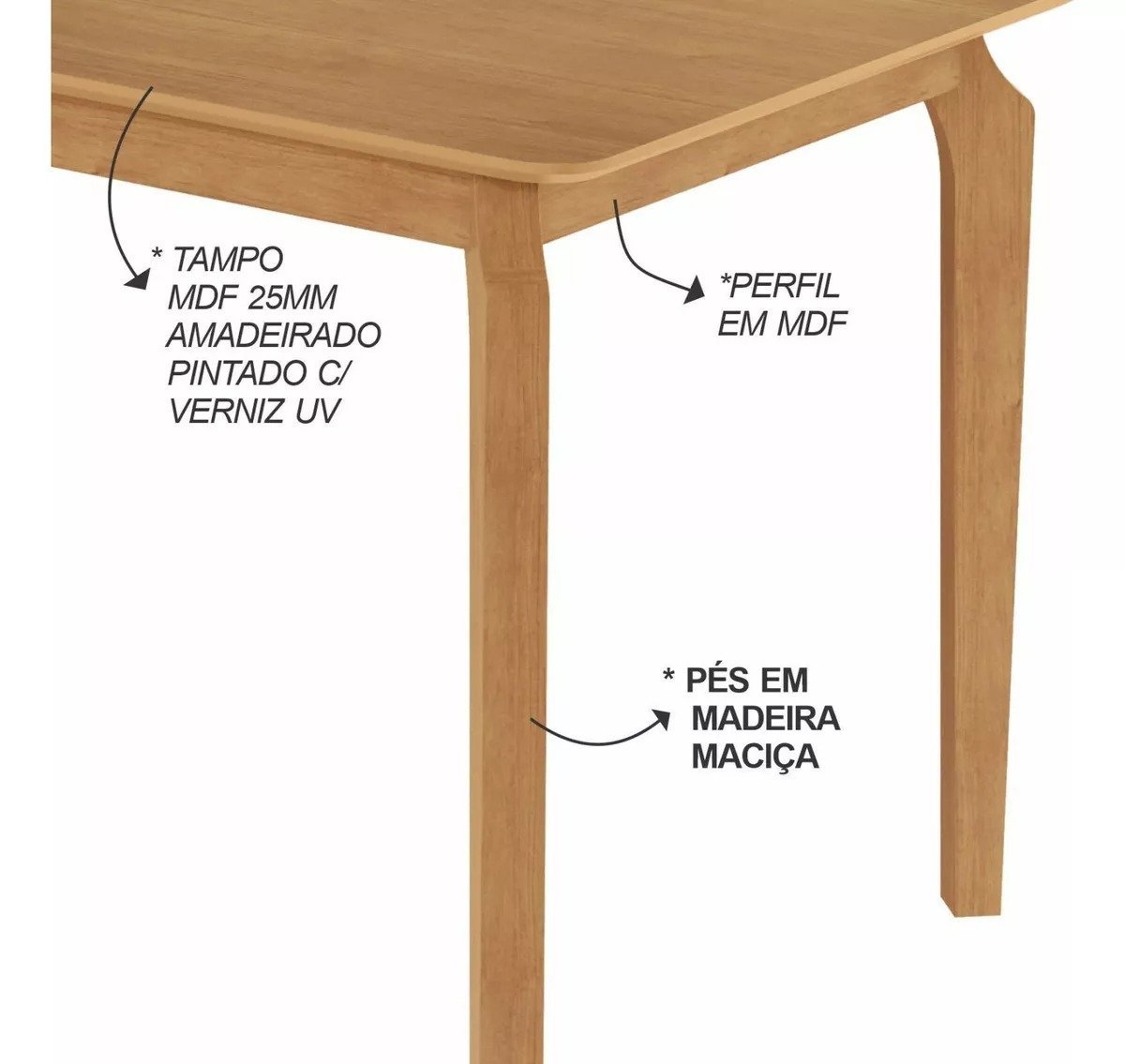 Mesa de Jantar Bellagio 108×68 Freijó Tampo Off 4 Cadeiras Clara Assento Savana – Poliman
