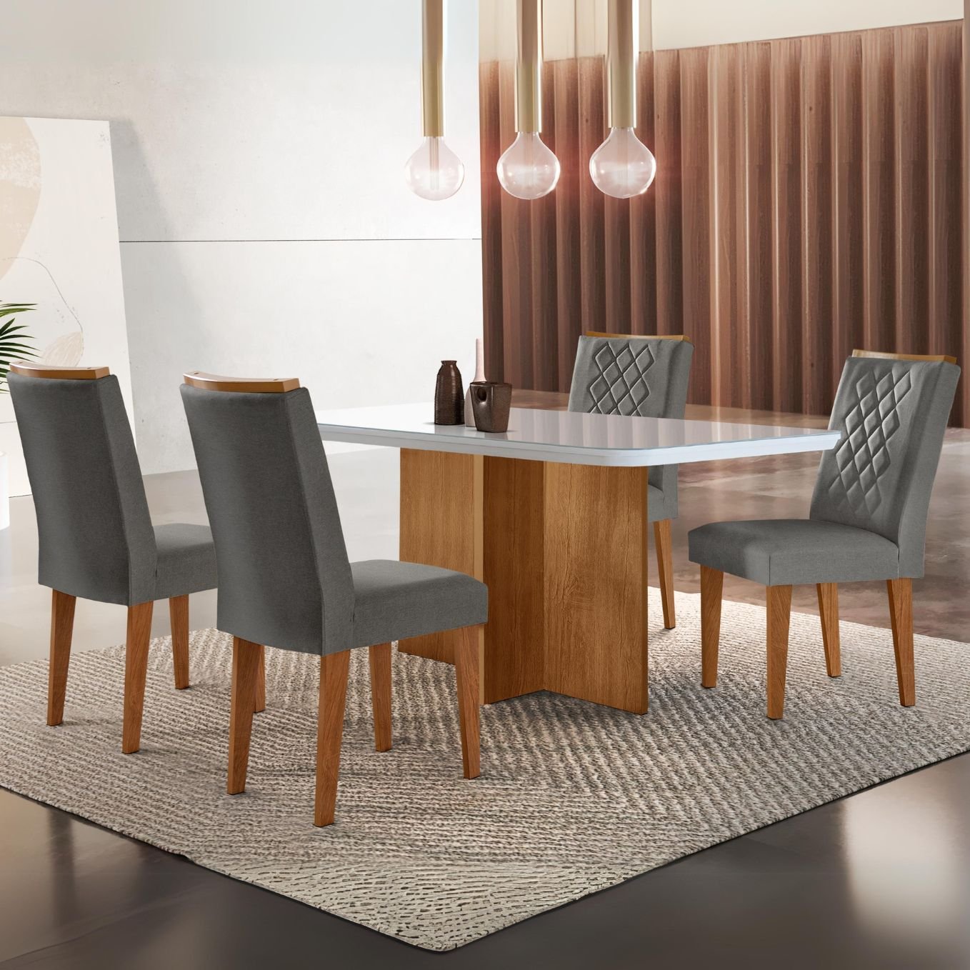 Mesa Berlim 120 Canto Copo Imbuia/Off White com 4 Cadeiras Jade Linho Grafite – RUFATO