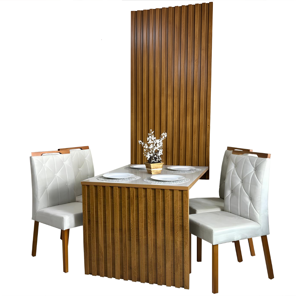 Mesa Cancun 120 Cinamomo/Off White com 4 Cadeiras Yasmim Veludo Bege – CEL MÓVEIS + KM DECOR
