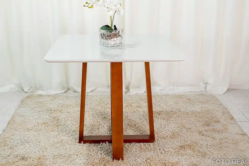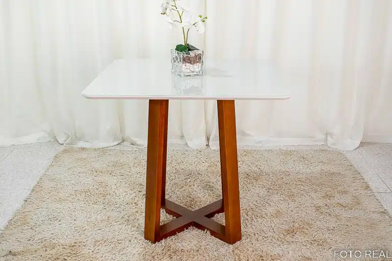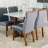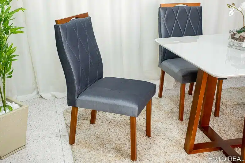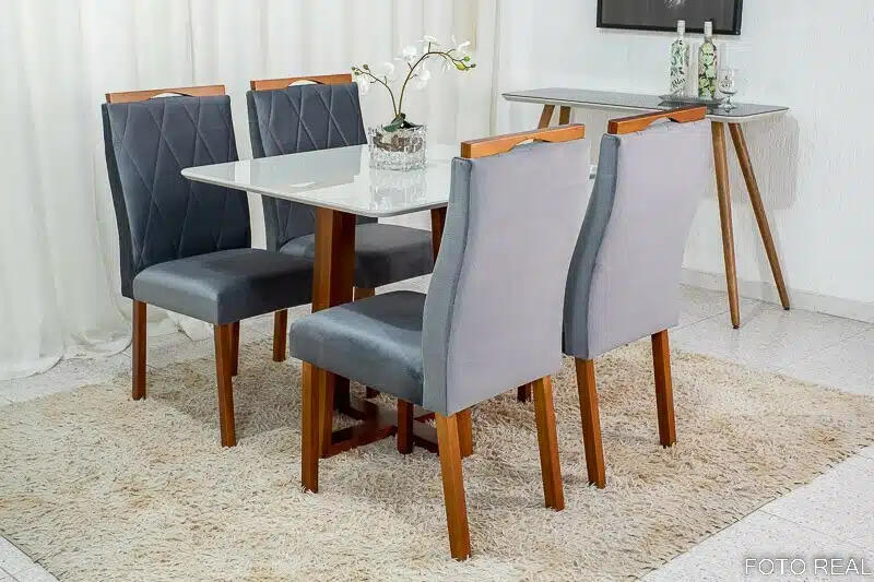 Mesa de Jantar Pedro Mel Vidro Off 90×90 4 Cadeiras Lisboa Veludo Cinza 507 Madeira Maciça Art Assento – Entregue Montada