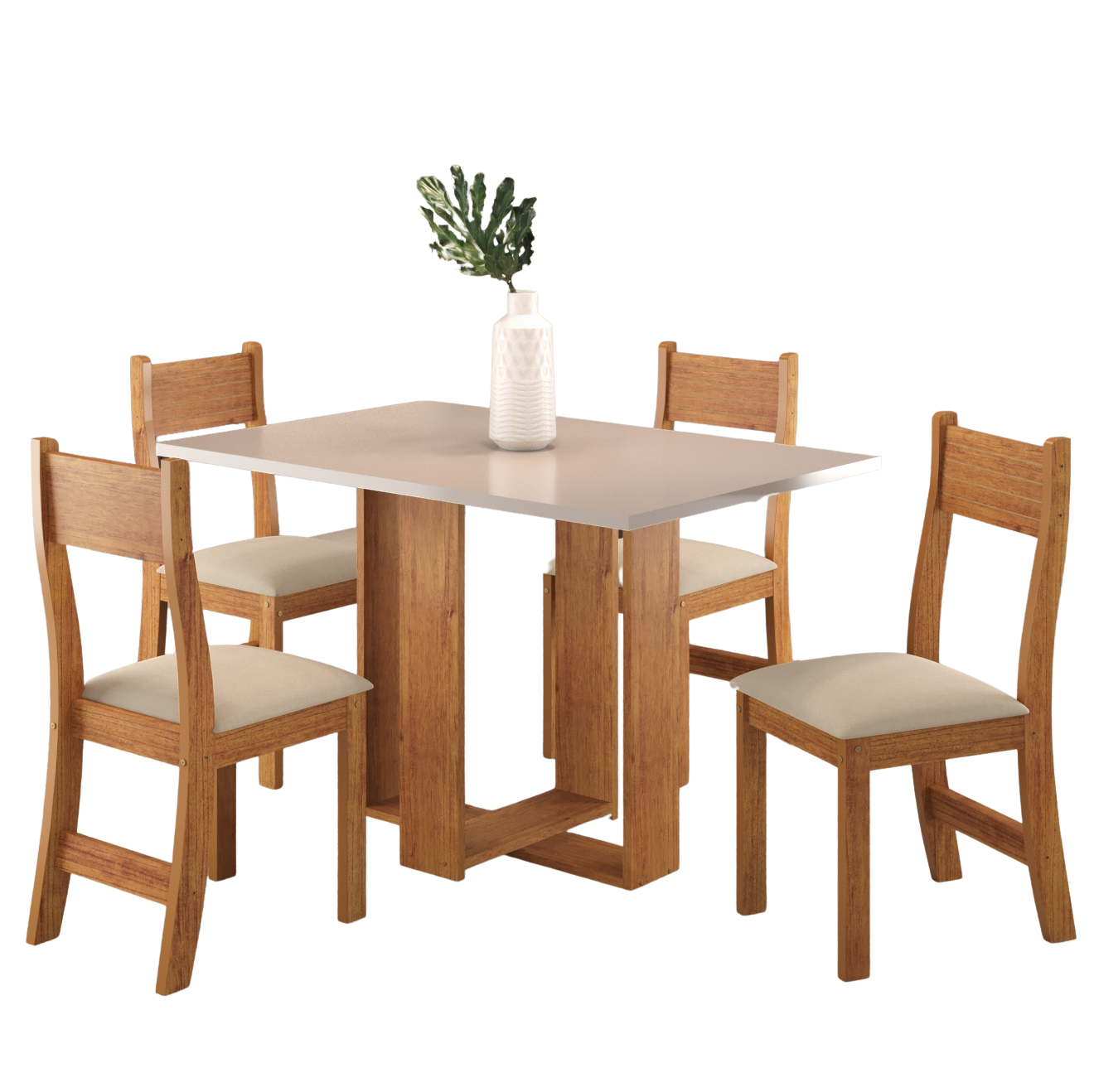 Mesa Magic Mel/Blonde com 4 Cadeiras Brisa Veludo Marfim – VIERO MÓVEIS