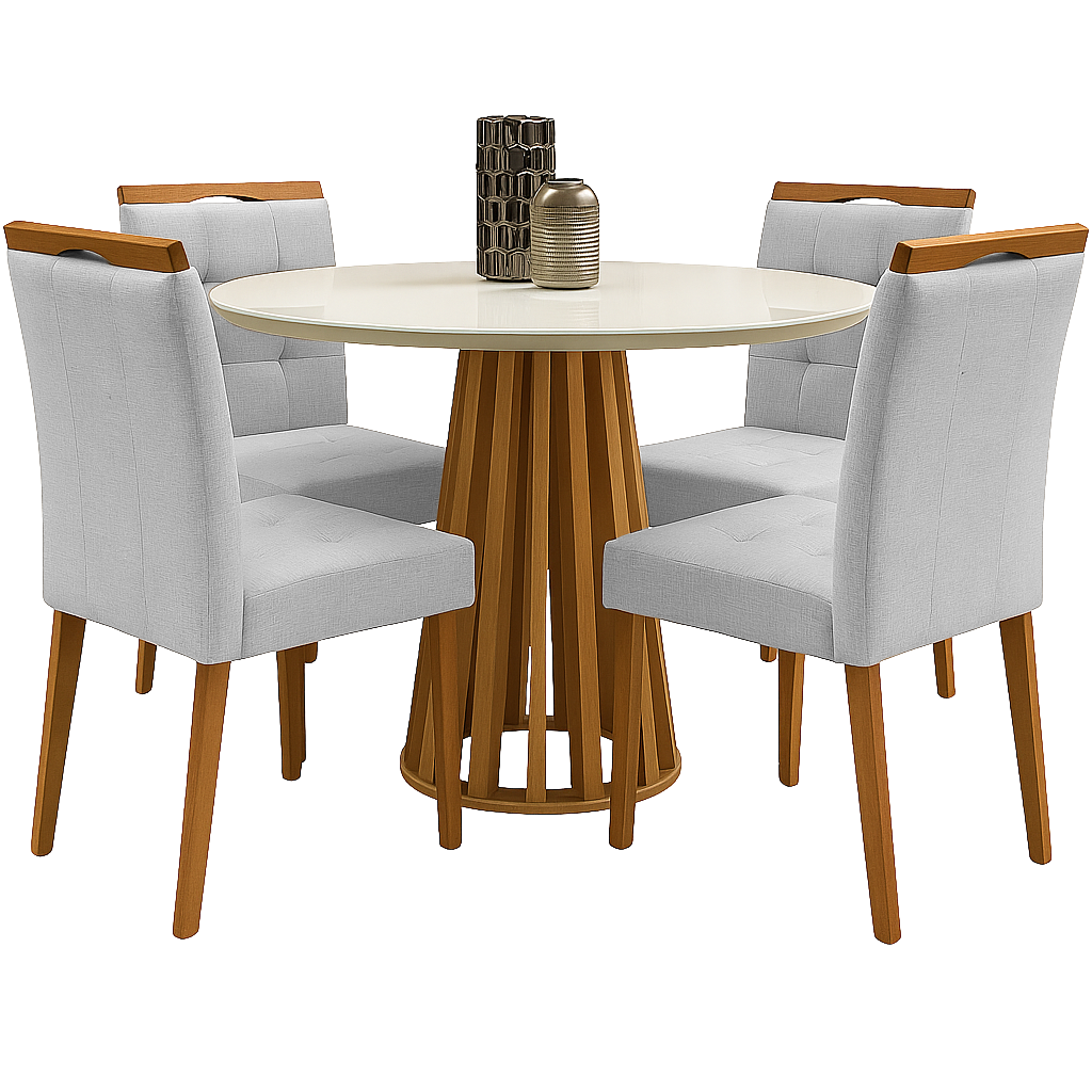 Mesa Redonda Berlim 100 Cinamono/Off White com 4 Cadeiras Sophia Linho Cinza Prata 206 – CEL MÓVEIS + WM DECOR