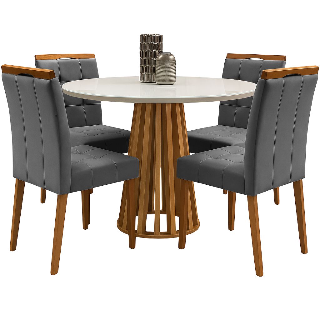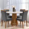 Mesa Redonda Berlim 100 Cinamono/Off White com 4 Cadeiras Sophia Veludo Cinza Grafite– CEL MÓVEIS + WM DECOR