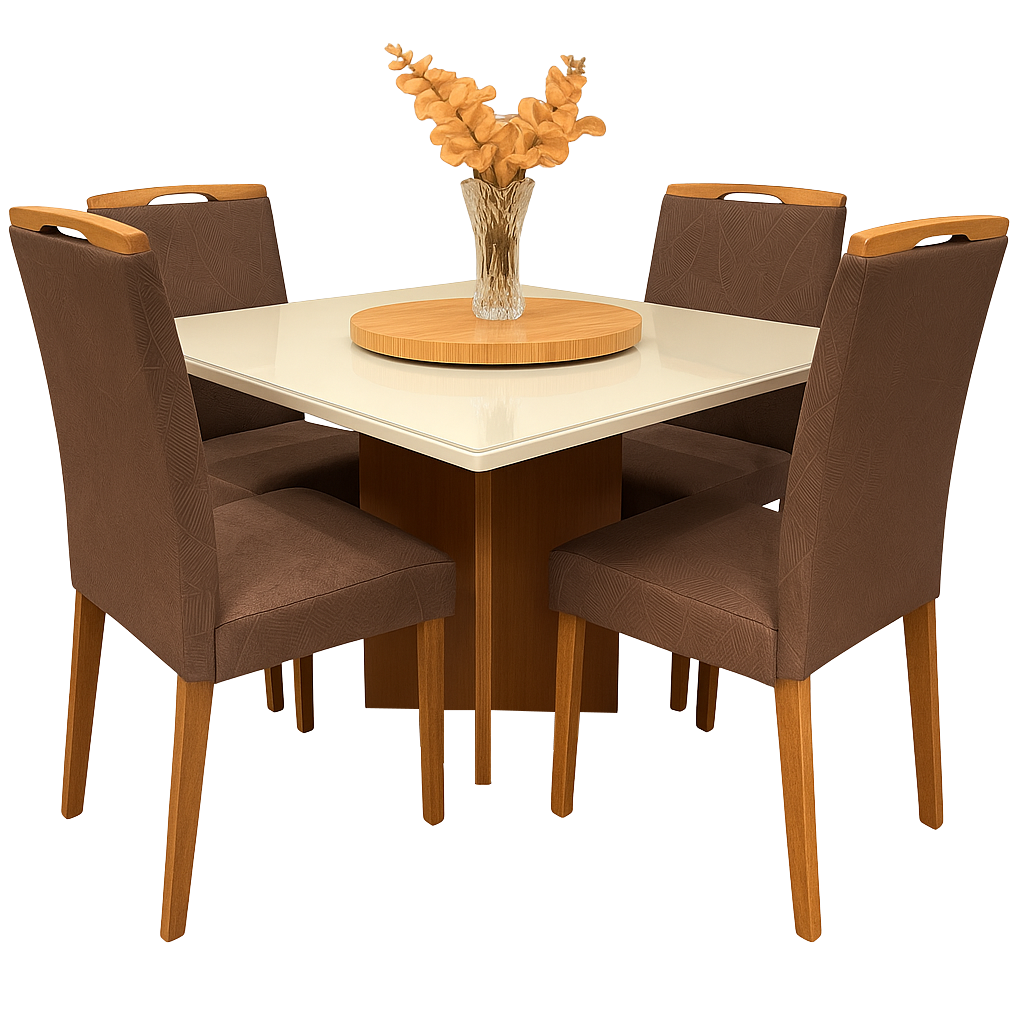 Mesa Salinas 120 Cinamomo/Off White com 4 Cadeiras Priscila Veludo Marrom 1014 – AVALON DECOR + CARVALHO DECOR