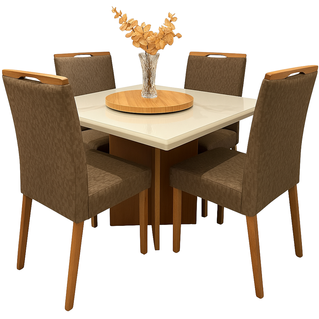 Mesa Salinas 120 Cinamomo/Off White com 4 Cadeiras Priscila Veludo Marrom 1015 – AVALON DECOR + CARVALHO DECOR