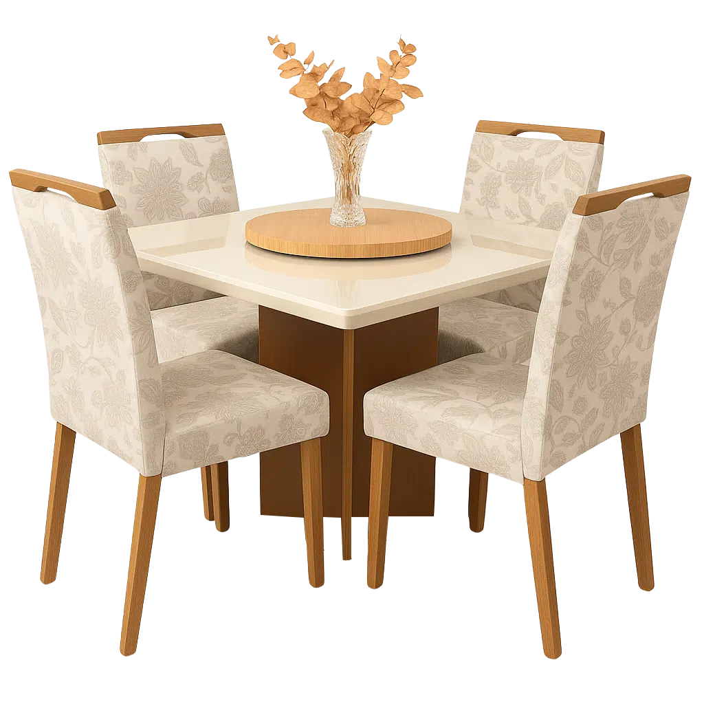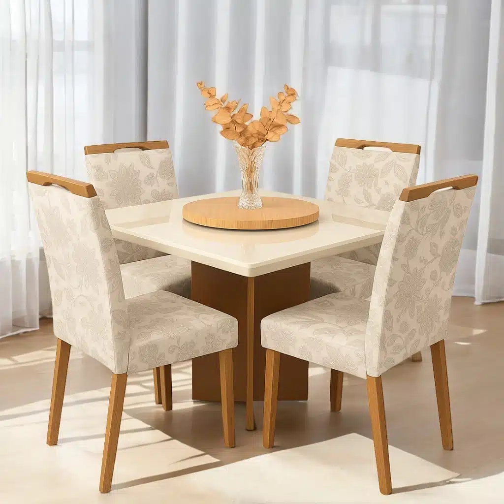Mesa Salinas 90 Cinamomo/Off White com 4 Cadeiras Priscila Veludo Bege 224 – AVALON DECOR + CARVALHO DECOR