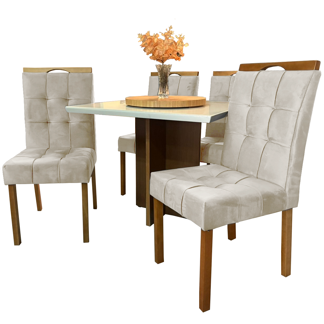 Mesa Salinas 90 Cinamomo/Off White com 4 Cadeiras Sophia Veludo Bege – AVALON DECOR + WM DECOR