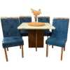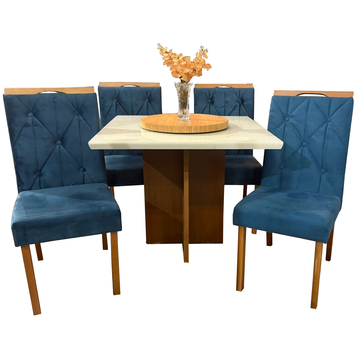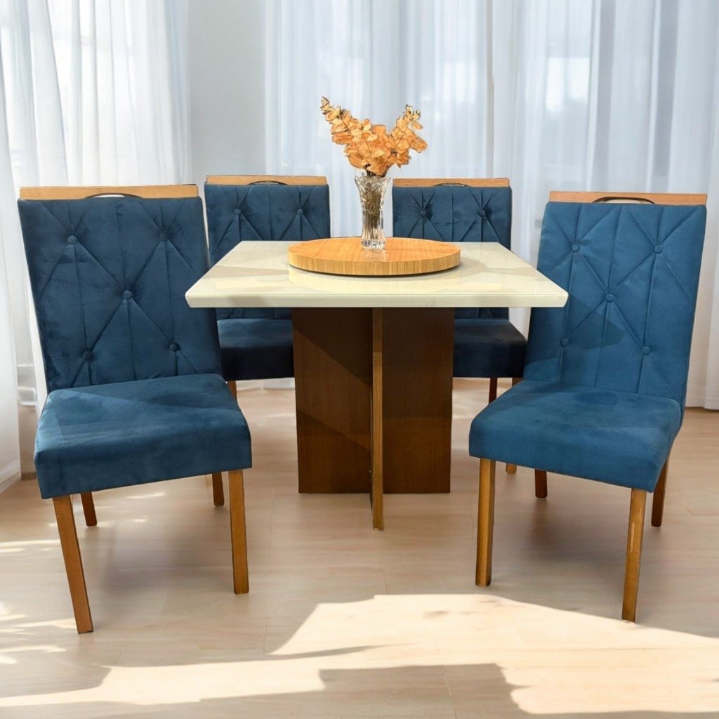 Mesa Salinas 90 Cinamomo/Off White com 4 Cadeiras Yasmim Veludo Azul – AVALON DECOR + KM DECOR