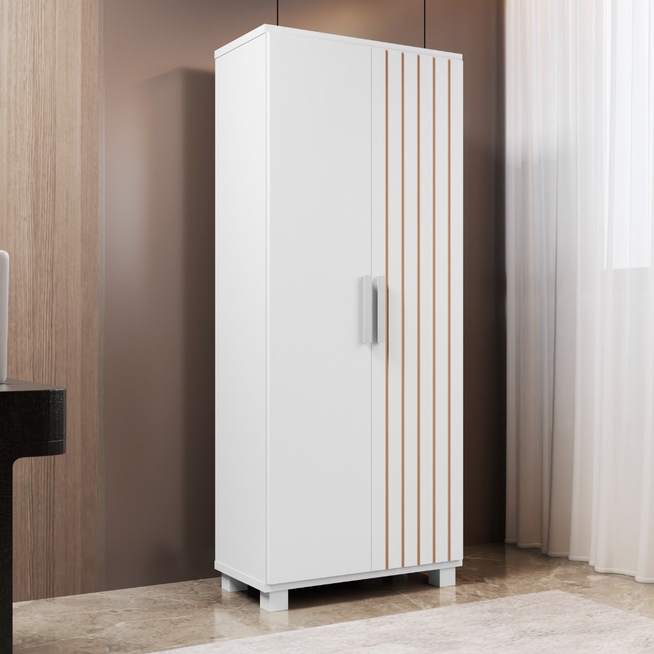 – Duas portas com dobradiças metálicas