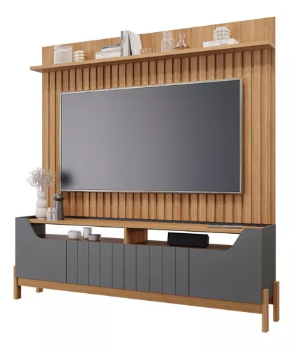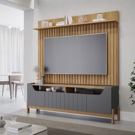 Painel até 70″ Trend Nature + Bancada Moema Grafite/Nature – PERMÓBILI