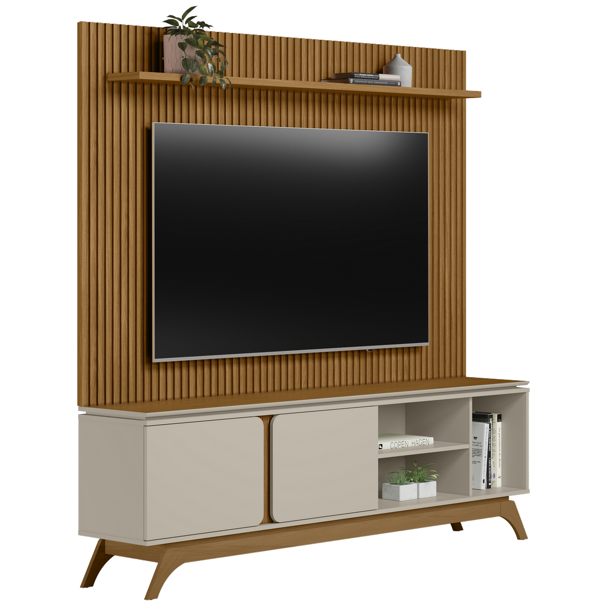 Painel até 75″ Gênova 2.0 Nature + Rack Istambul Nature/Off White – LINEA BRASIL