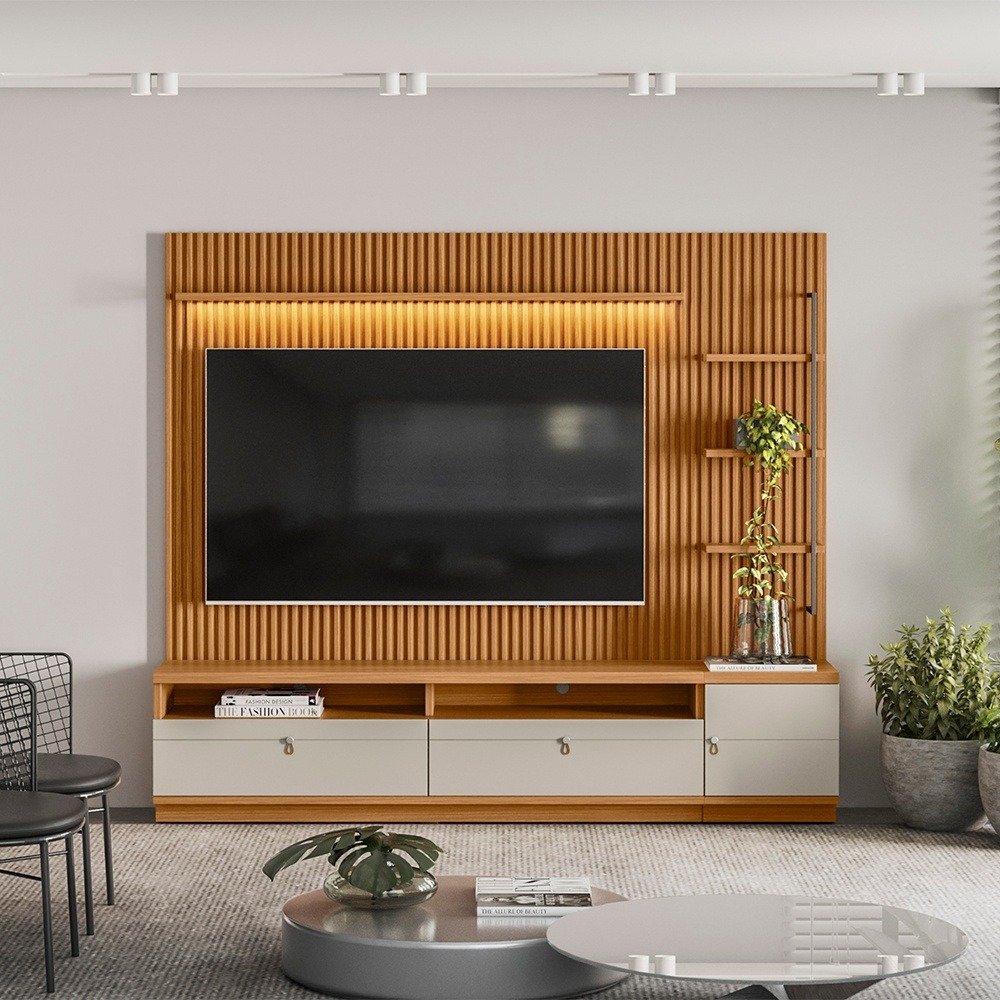 Painel até 75″ + Rack + Módulo Lateral Ouro Preto Nature/Off White – LINEA BRASIL
