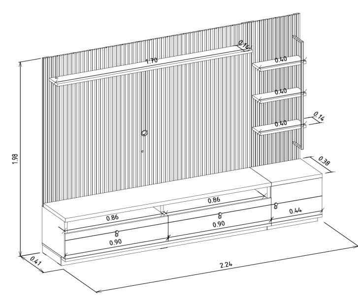 – Espaço para TV: 122 cm x 180 cm(AxL)