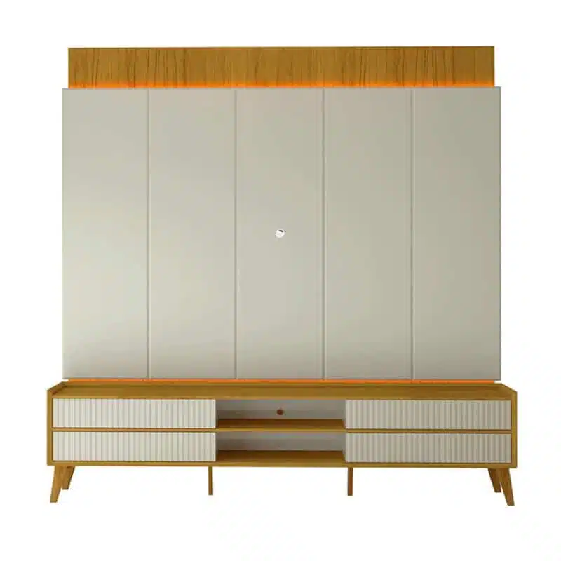 3{%%}Descrição{%%}Rack Magnífico 212 + Painel Magnífico 220 Nature/Off C/LED e Detalhe Ripado Larg. 2.18m Gelius