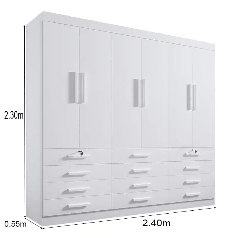 3{%%}Descrição#montagem{%%}Roupeiro Casal Mônaco Branco 6 Portas 12 Gavetas Larg. 2.40m – D Doro