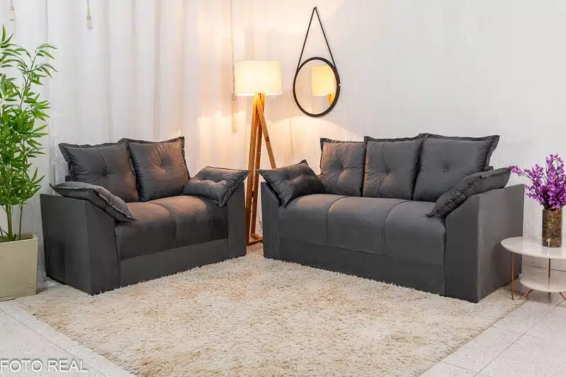 Sofá 3 e 2 lugares Petra Veludinho Cinza 605