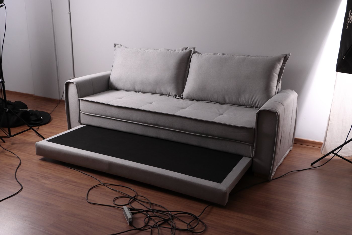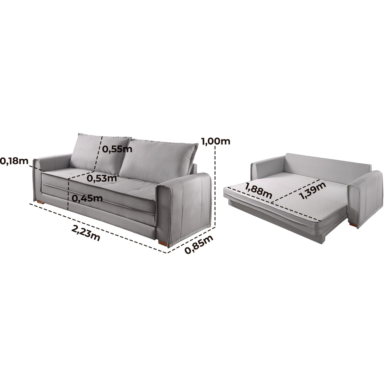 Sofá Cama Maldivas 2,23 m Linho Cinza – JC ESTOFADOS