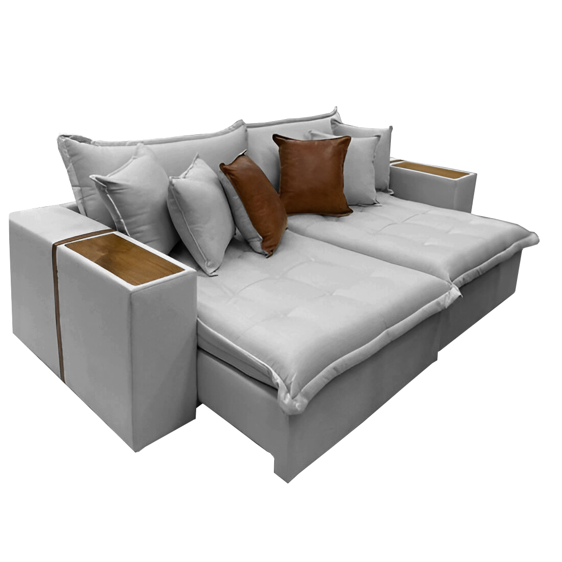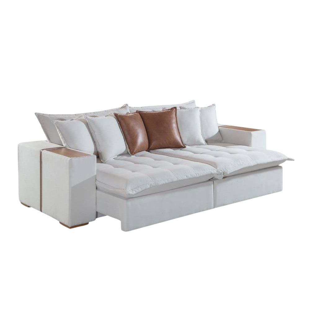 Sofá Cama Tebas 2,32 m Linho Gelo 07/Courino Dallas 07 – INNOVE ESTOFADOS