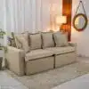 – Tecido linho: O linho possui uma textura naturalmente sofisticada, que confere ao sofá um aspecto elegante e atemporal. Seu visual suave e agradável pode dar um toque de classe à decoração de qualquer ambiente.