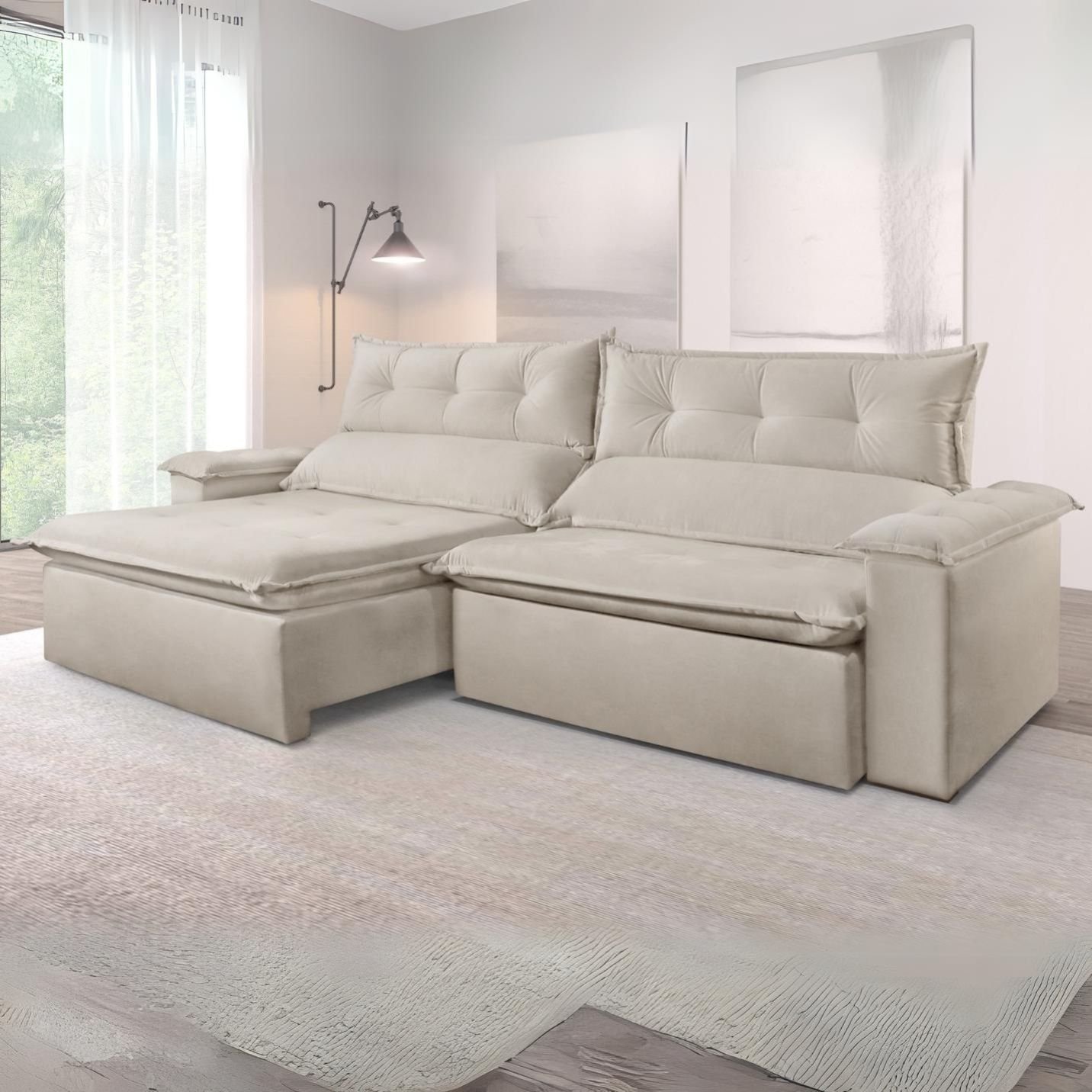 Sofá Retrátil e Reclinável 2,50 m S-102 Linho Bege 117 – SUPREMA ESTOFADOS