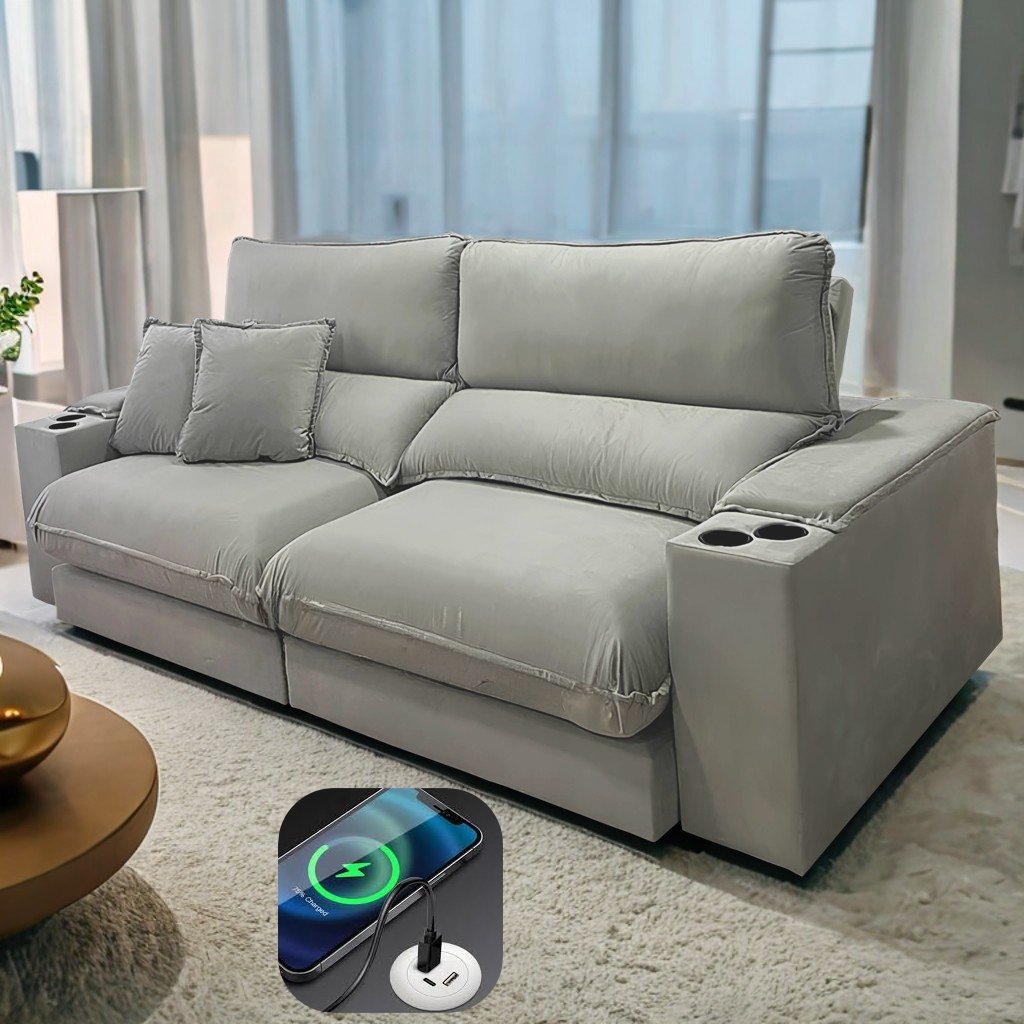 Sofá Retrátil e Reclinável Apogeu 2,50 m Veludo Prata 107 – ZARAT ESTOFADOS