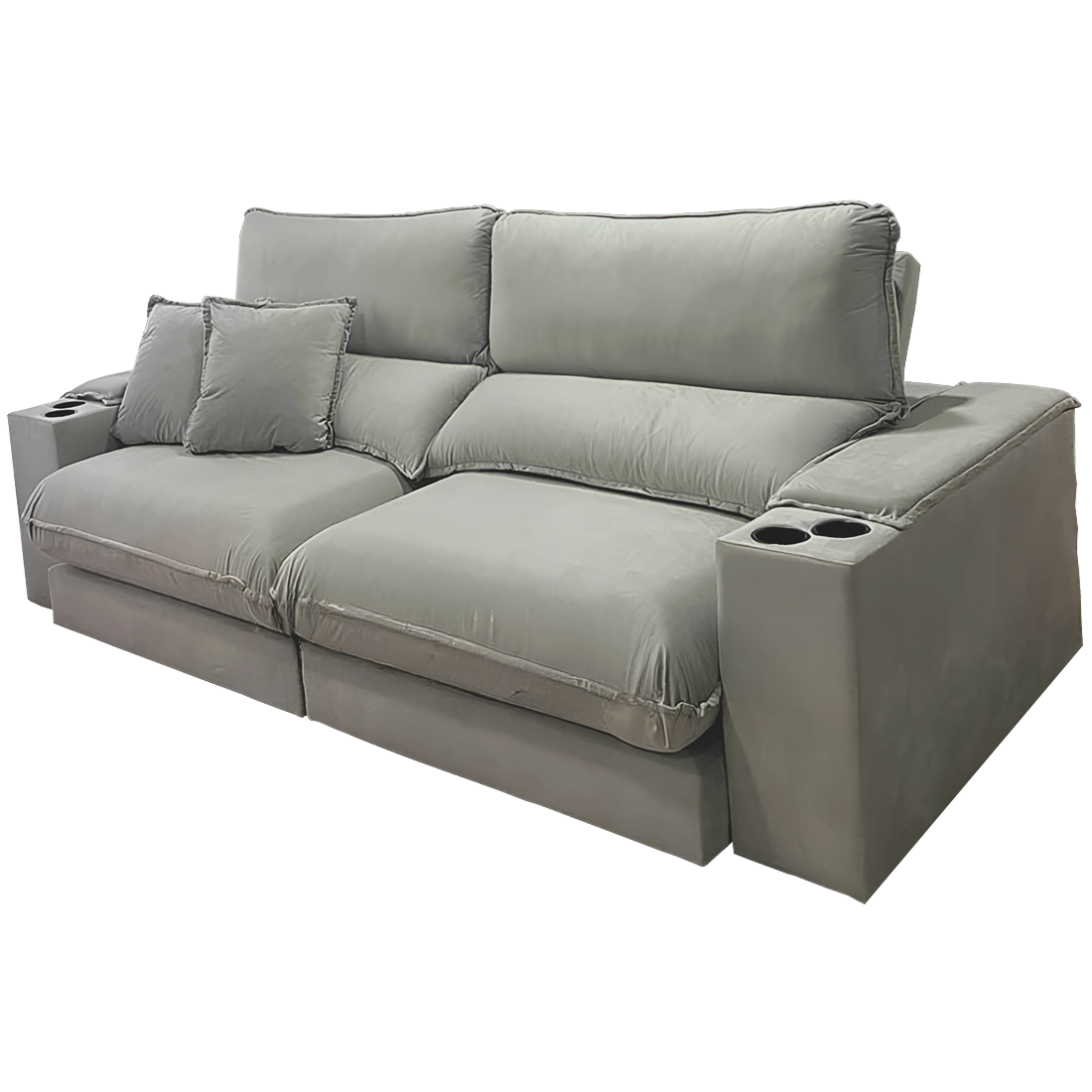 Sofá Retrátil e Reclinável Apogeu 2,90 m Veludo Prata 107 – ZARAT ESTOFADOS