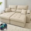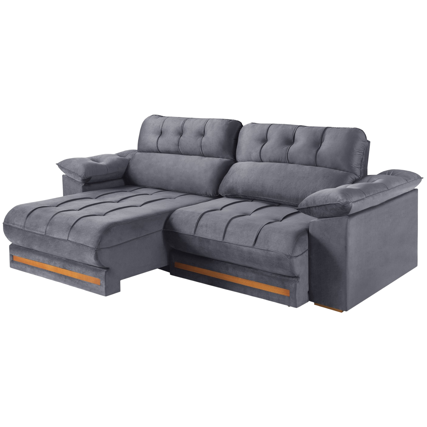 Sofá Retrátil e Reclinável Arezzo 2,50 m Veludo Cinza Grafite – SINGULAR ESTOFADOS