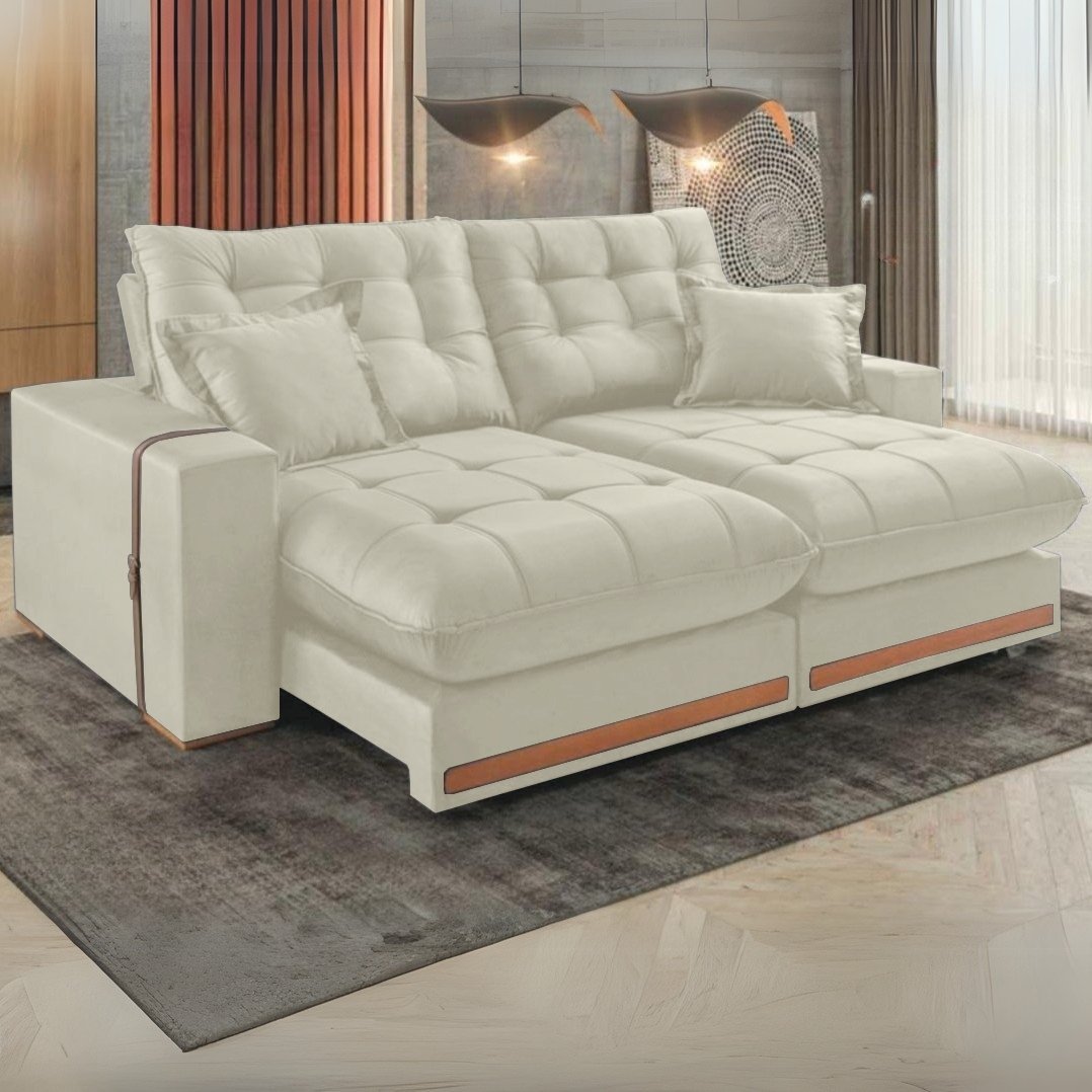 Sofá Retrátil e Reclinável Ártemis 017 2,50 m Veludo Marfim – VICAM ESTOFADOS