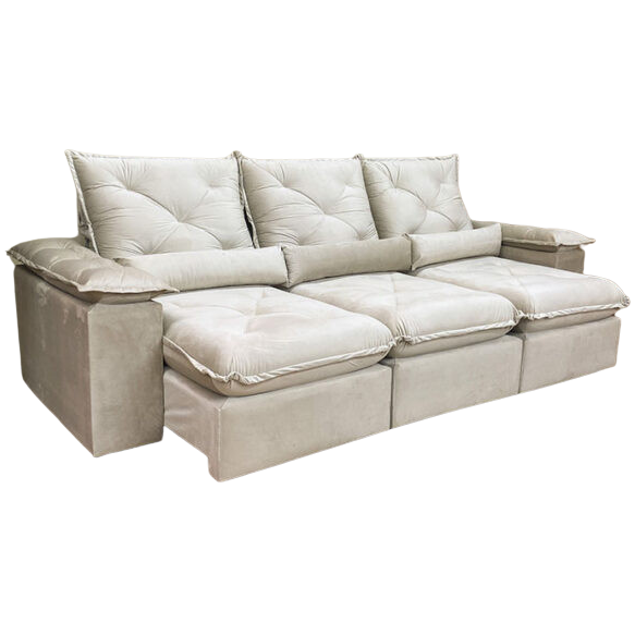 Sofá Retrátil e Reclinável Brasão 2,70 m Veludo Bege – MD ESTOFADOS
