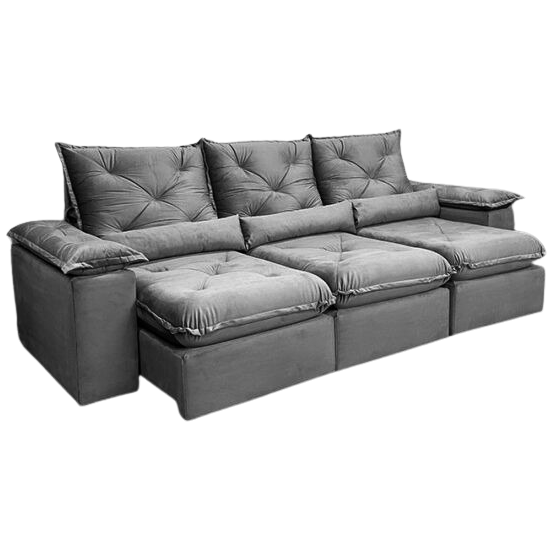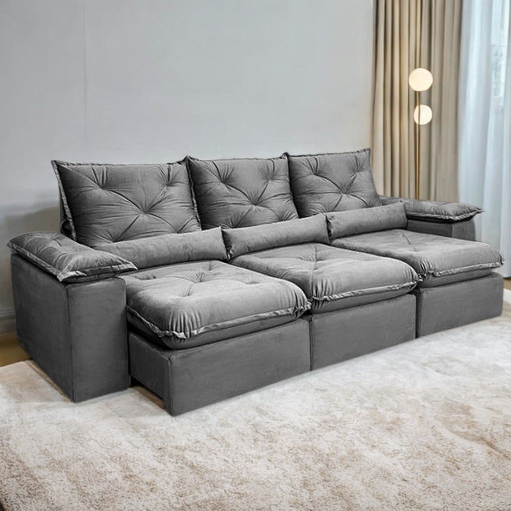 Sofá Retrátil e Reclinável Brasão 2,70 m Veludo Grafite – MD ESTOFADOS