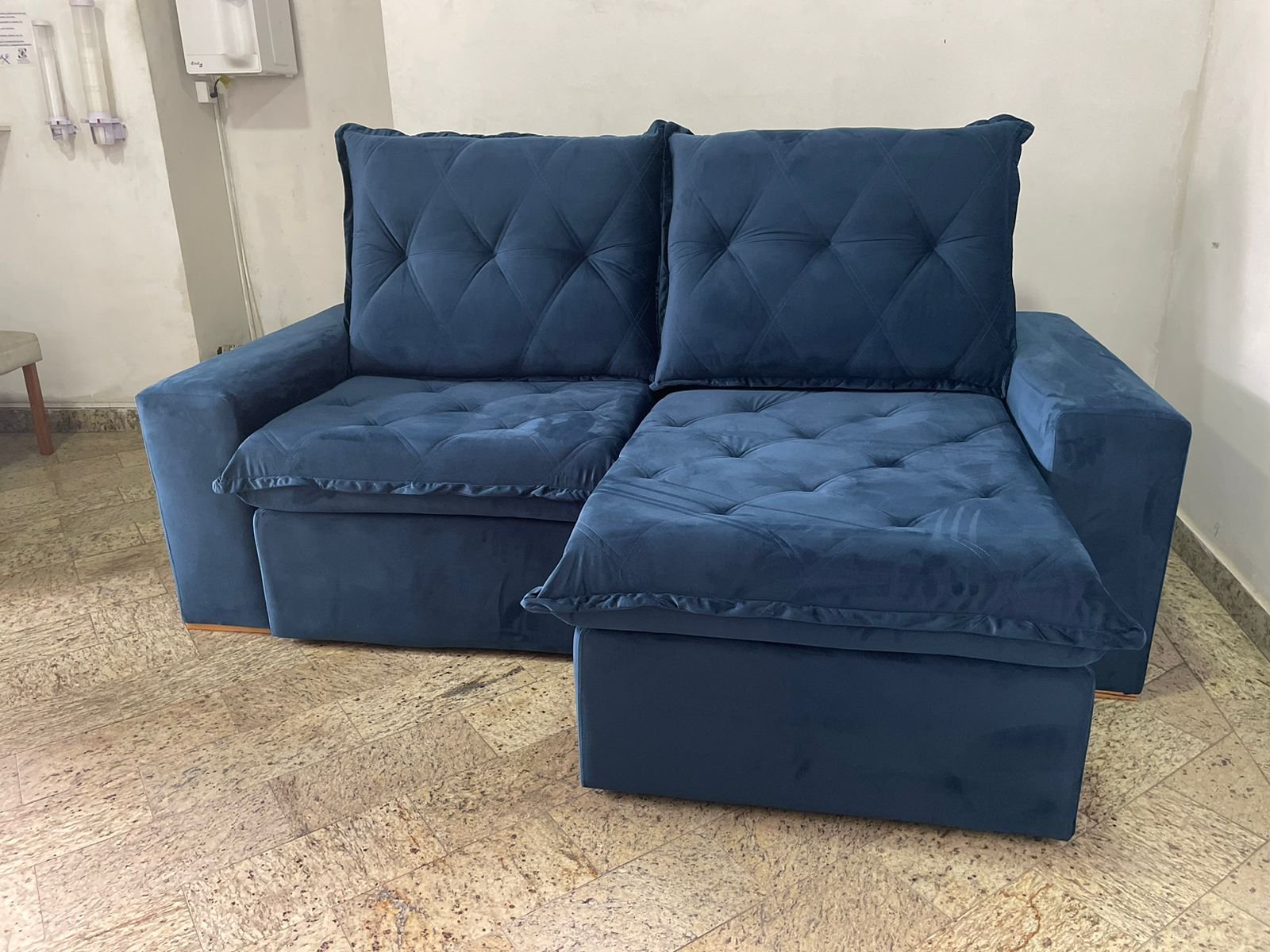 – Almofadas do encosto em fibra de silicone com detalhes em costura captonada