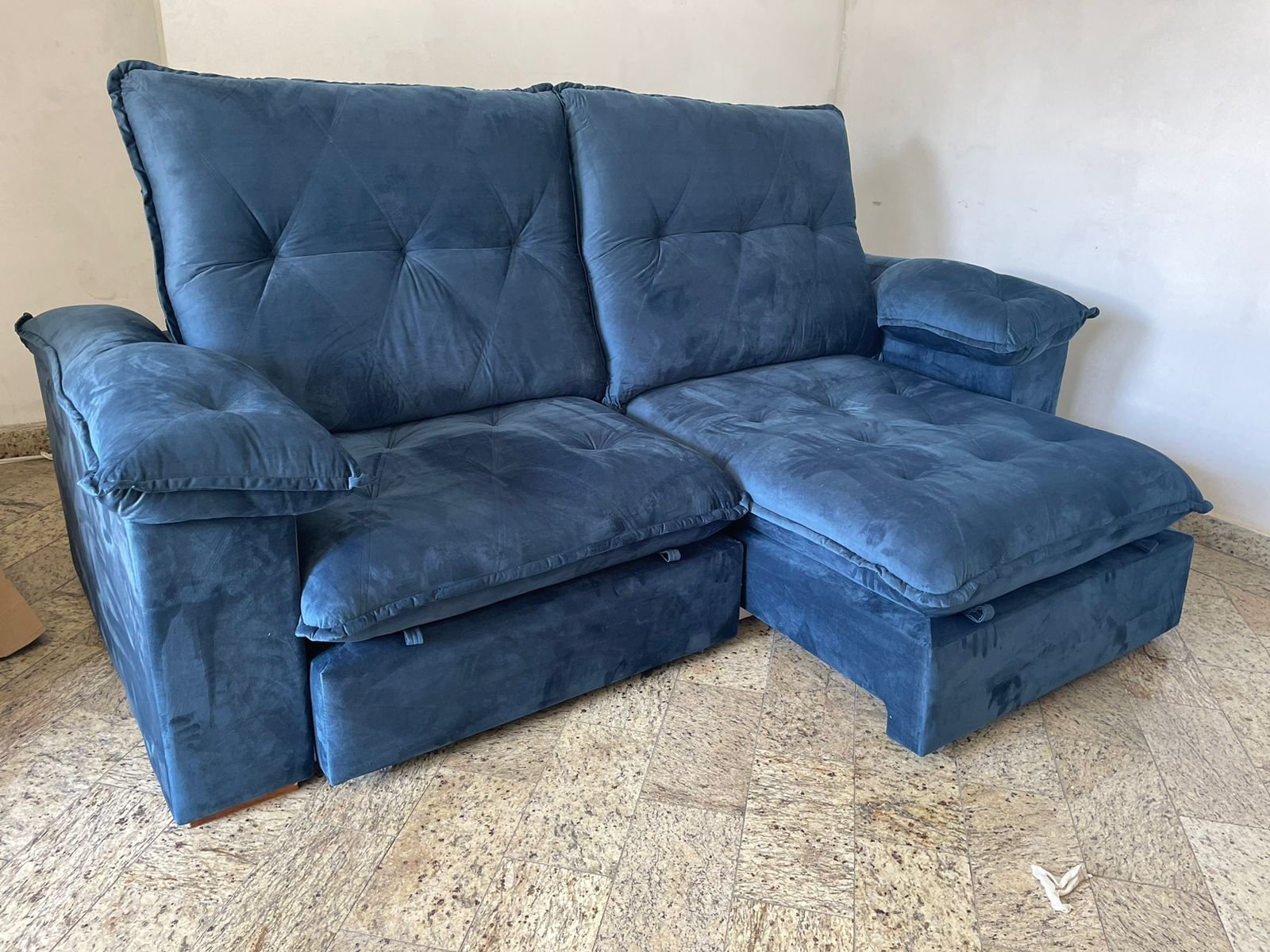 Sofá Retrátil e Reclinável Corvette 2,50 m Azul – D’VITRINE ESTOFADOS