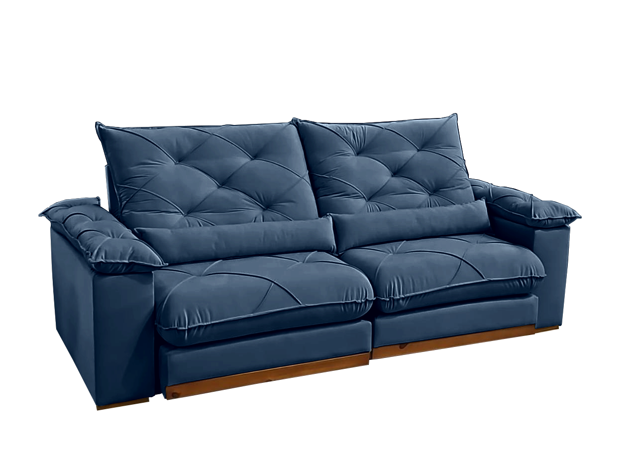 Sofá Retrátil e Reclinável Gran Paladium (Pillow) 2,50 m Veludo Azul – IMPÉRIO DECOR