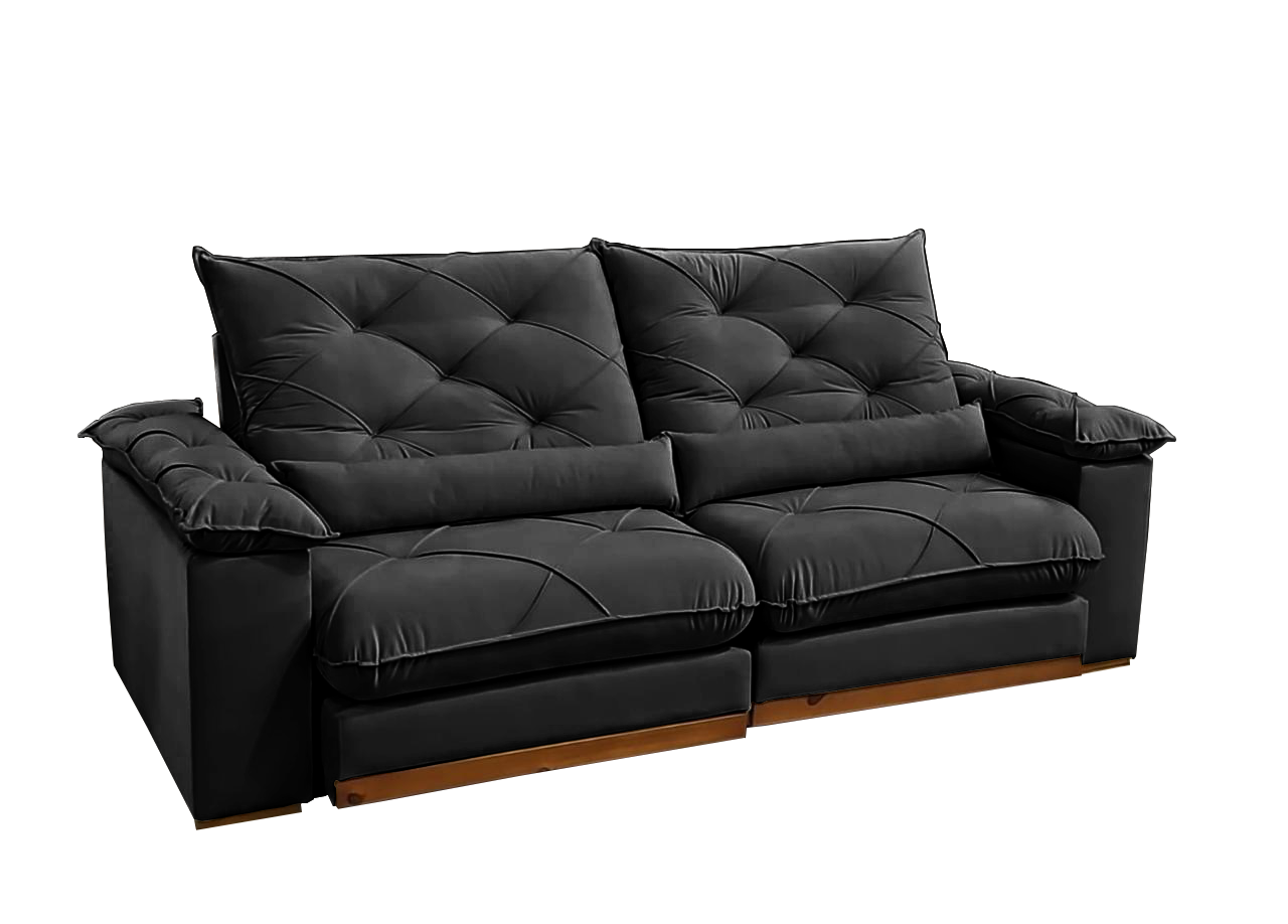 Sofá Retrátil e Reclinável Gran Paladium (Pillow) 2,50 m Veludo Preto – IMPÉRIO DECOR