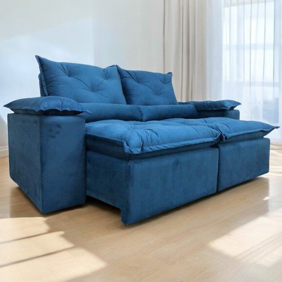 Sofá Retrátil e Reclinável Grécia Azul 2,00 m – QUINE ESTOFADOS