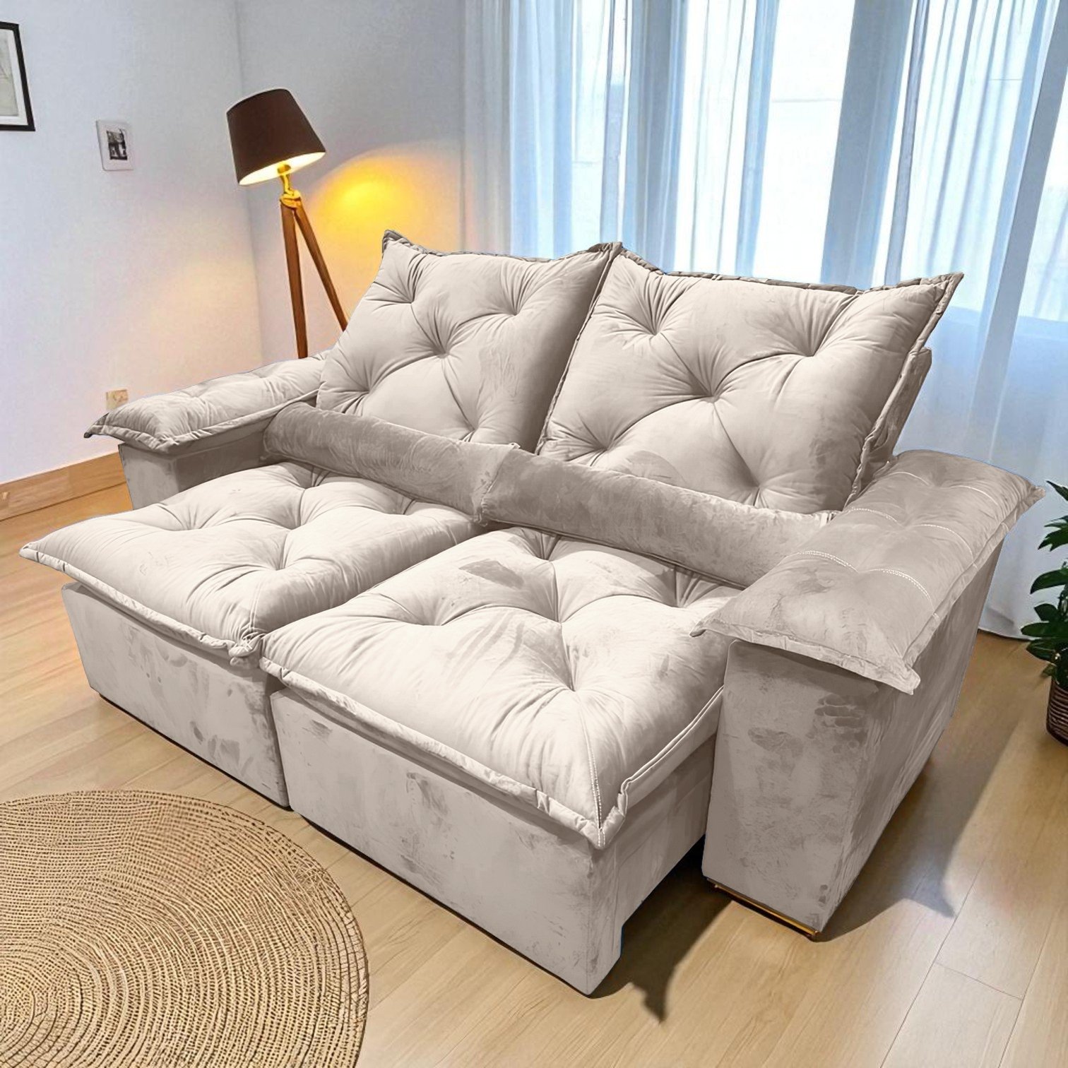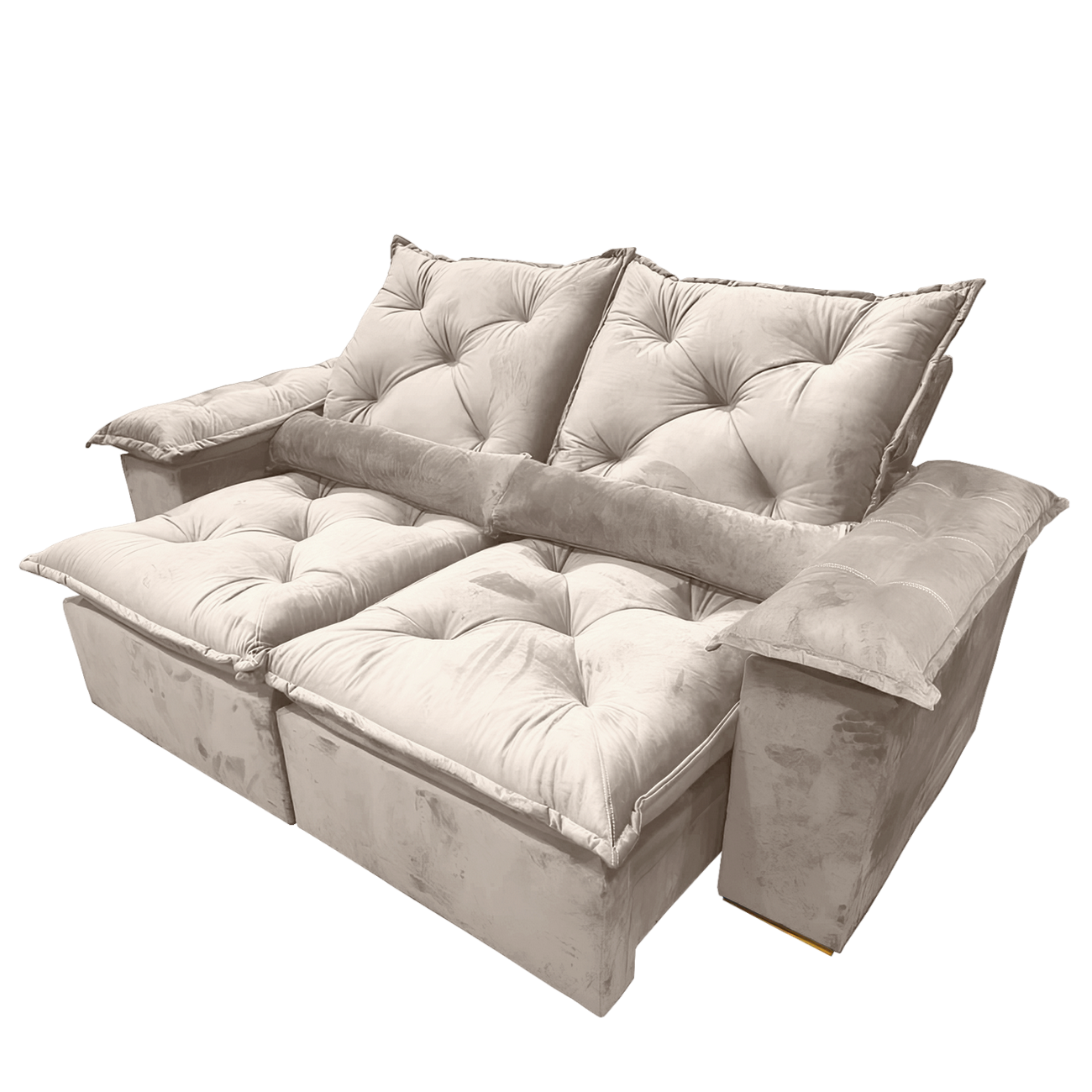 Sofá Retrátil e Reclinável Grécia Bege 2,00 m – QUINE ESTOFADOS