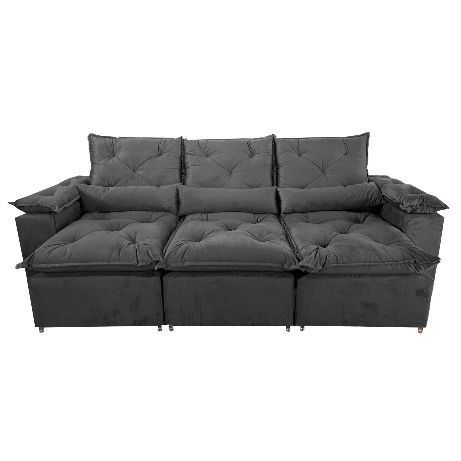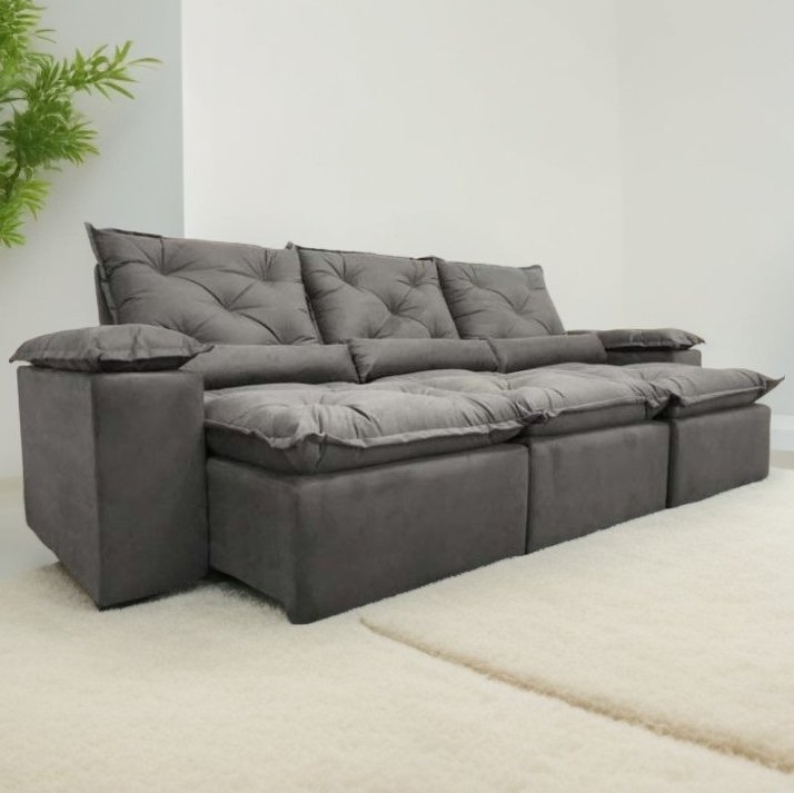 Sofá Retrátil e Reclinável Grécia 2,70 m Cinza – QUINE ESTOFADOS
