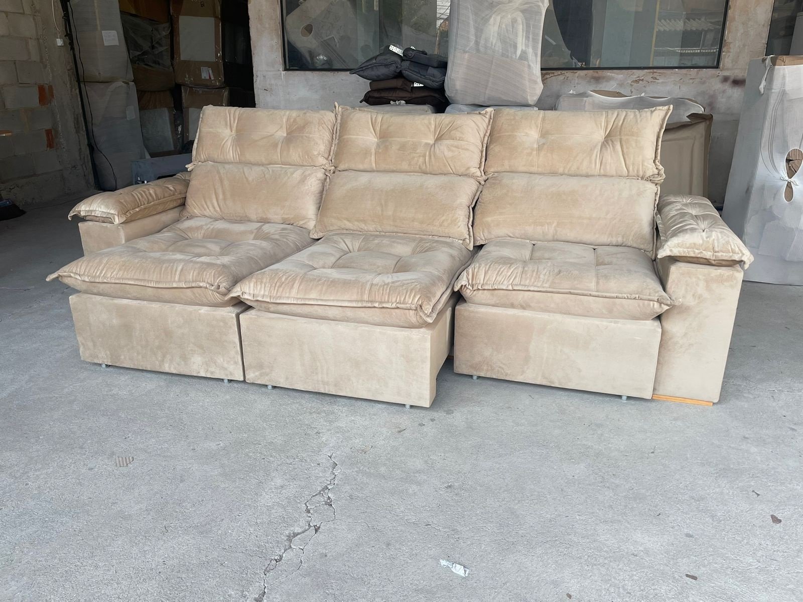 Sofá Retrátil e Reclinável Imperial 2,75 m Veludo Jolie Bege 03 – IMPERIAL DECOR