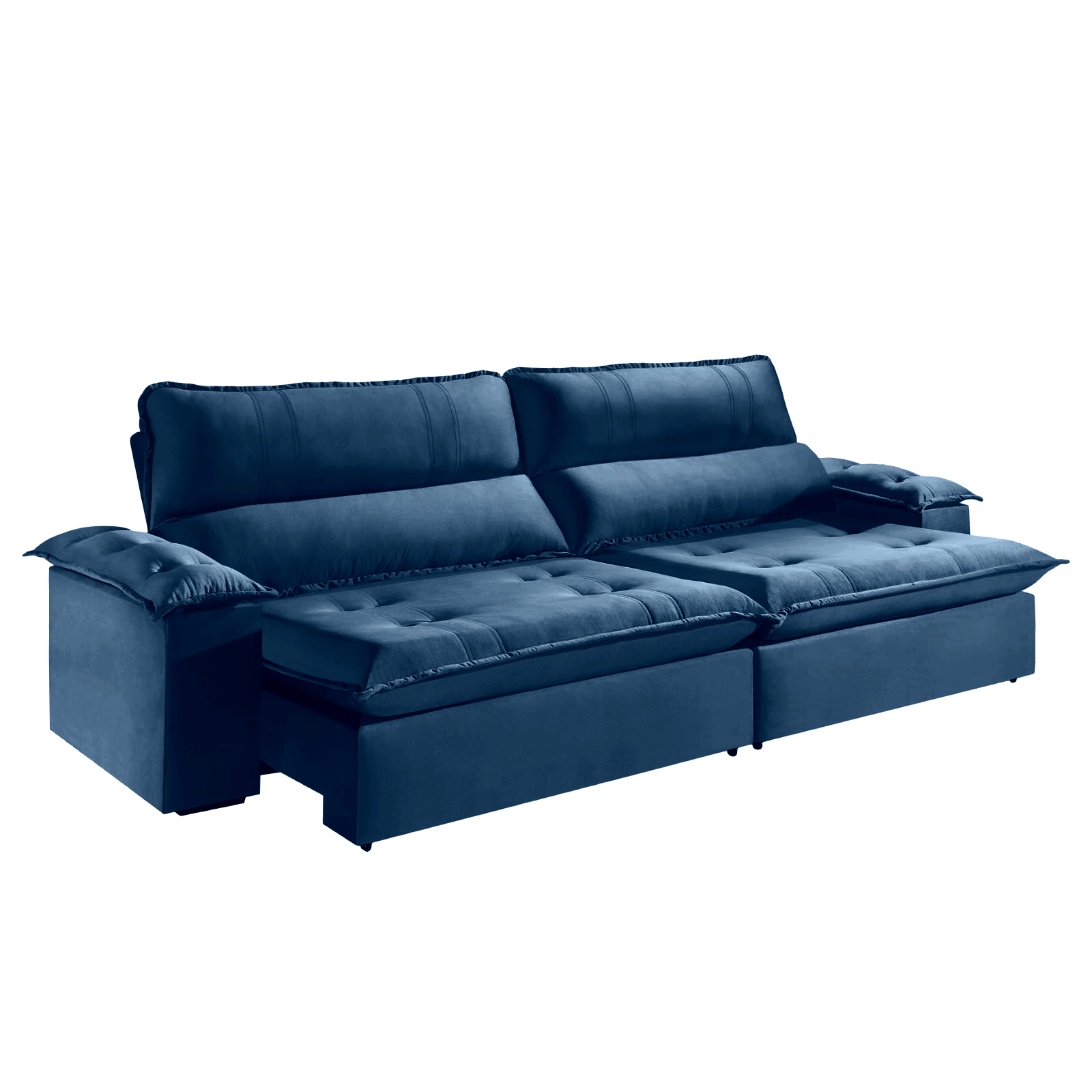 Sofá Retrátil e Reclinável Kiara 2,50 m Veludo Azul 104 – ZARAT ESTOFADOS